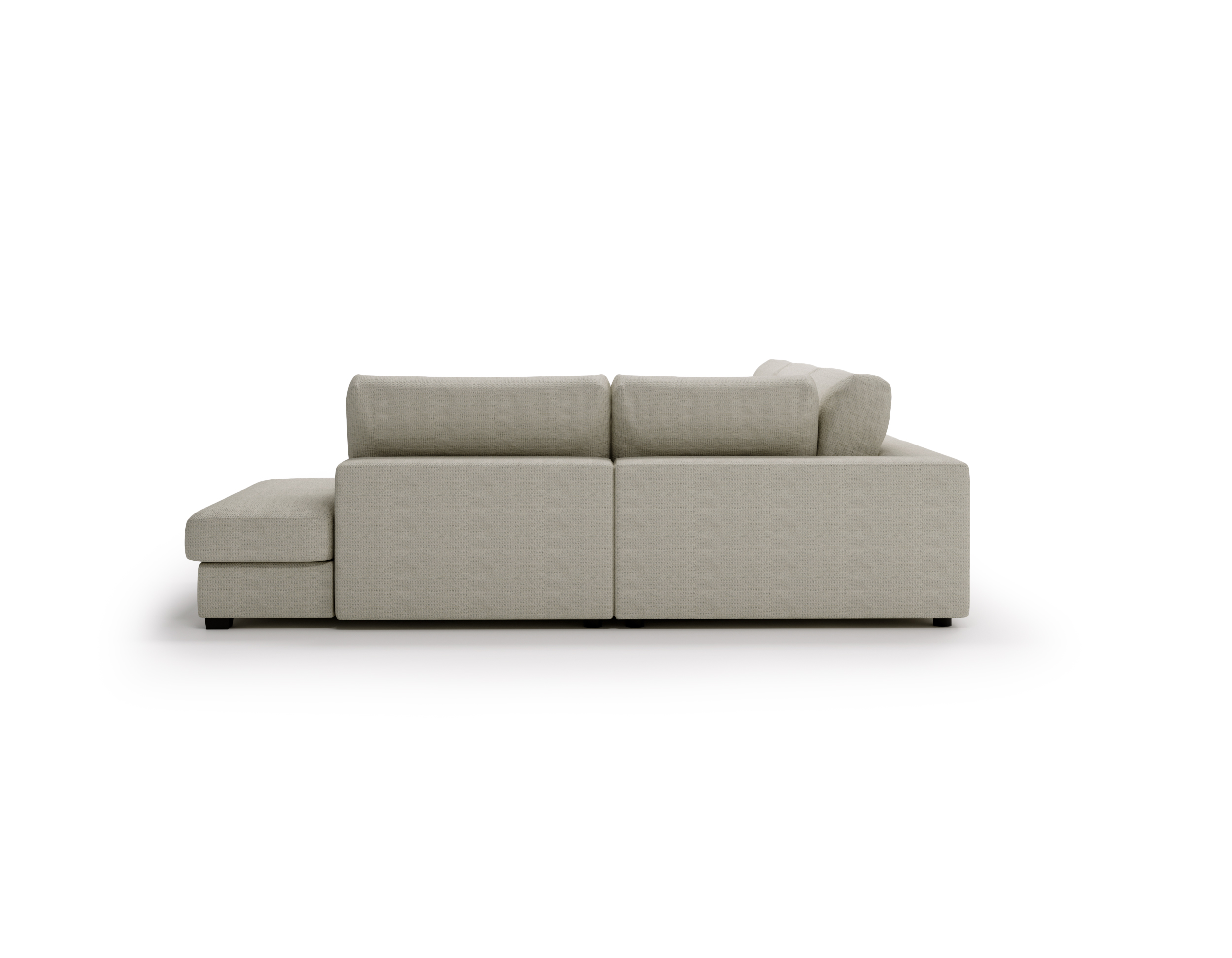 Narożnik dostępny jest w wersji prawo- lub lewostronnej, dzięki czemu łatwo dopasujesz go do układu swojego wnętrza. Tapicerowany tył pozwala ustawić mebel także na środku salonu, bez kompromisów estetycznych.