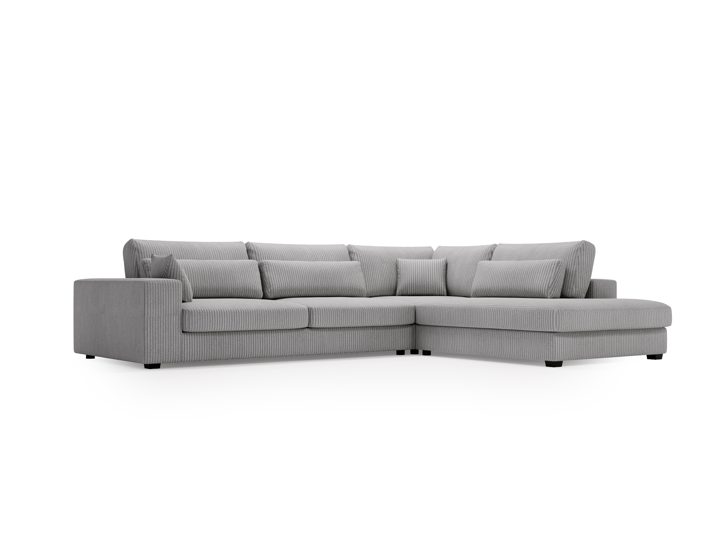 Narożnik Carmex w szarym kolorze to propozycja dla osób, które cenią przestronne formy, nowoczesny design i wysoki komfort codziennego wypoczynku. Uniwersalny kształt litery L sprawia, że doskonale odnajdzie się w dużym salonie, tworząc reprezentacyjną i wygodną strefę relaksu.