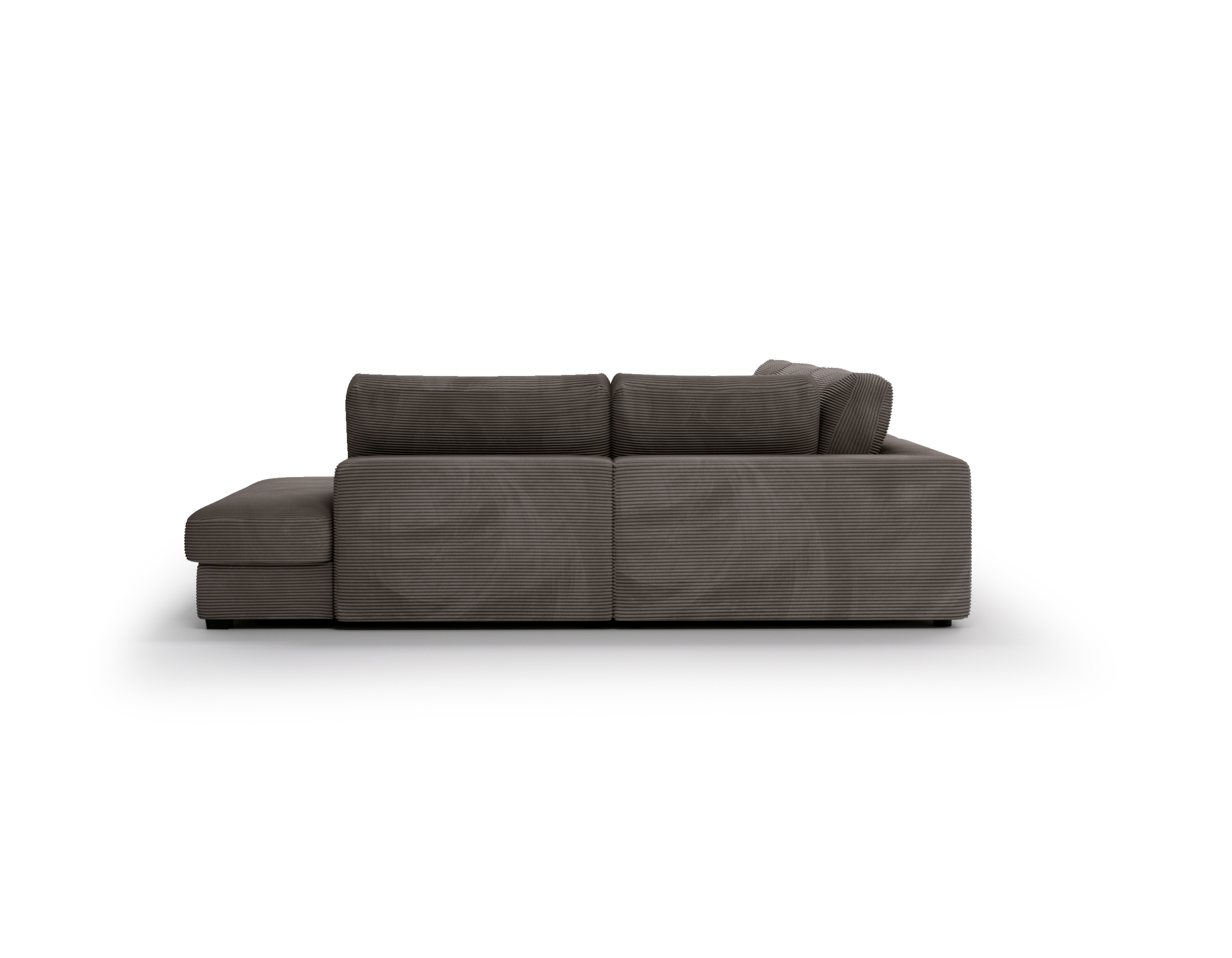 Narożnik dostępny jest w wersji prawo- lub lewostronnej, dzięki czemu łatwo dopasujesz go do układu swojego wnętrza. Tapicerowany tył pozwala ustawić mebel także na środku salonu, bez kompromisów estetycznych.