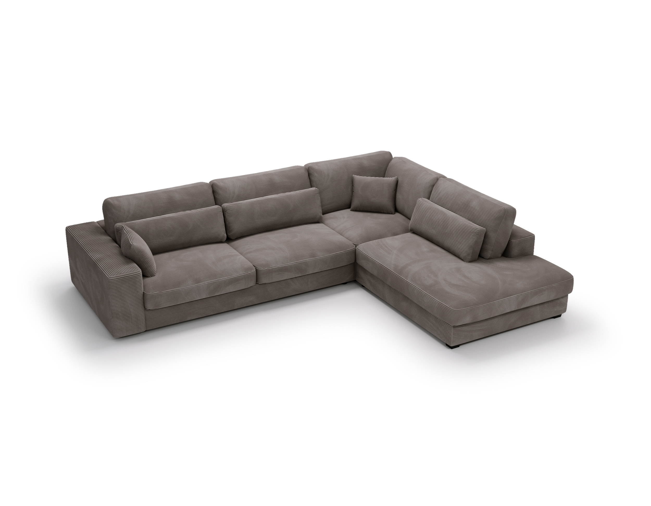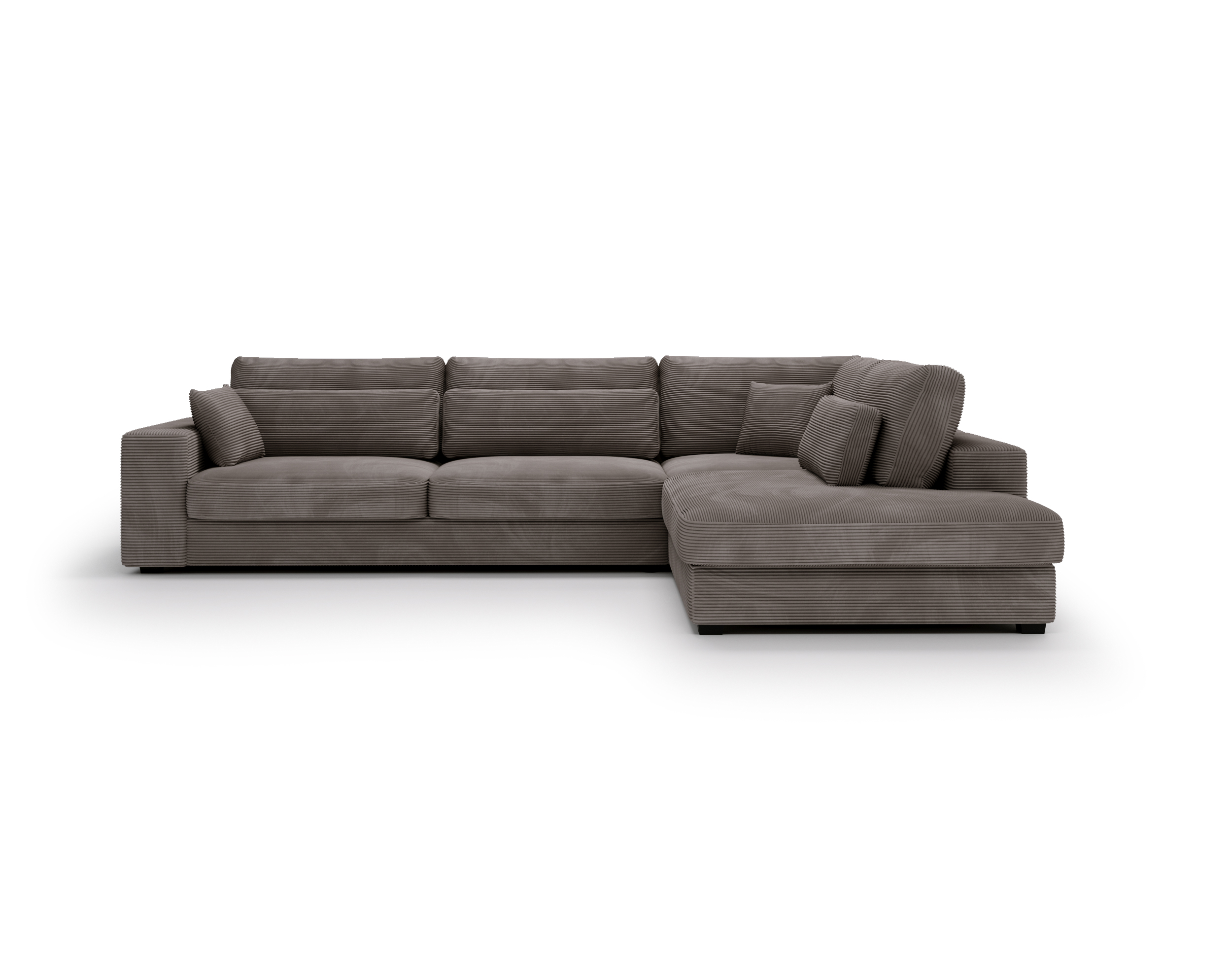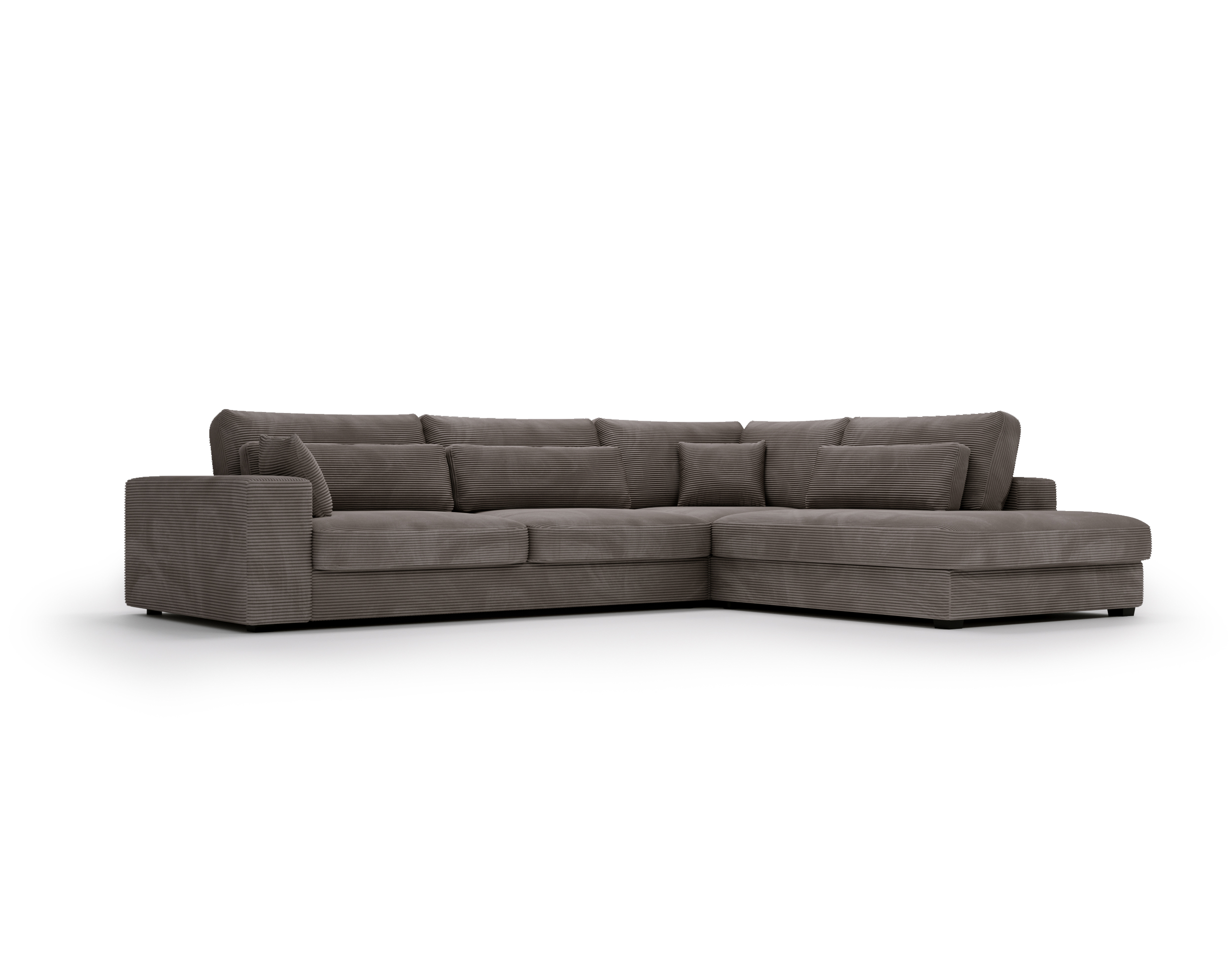 Narożnik Carmex nie posiada funkcji spania ani pojemnika na pościel – to idealny wybór dla osób, które stawiają na maksymalną wygodę i efektowny wygląd w strefie dziennej.