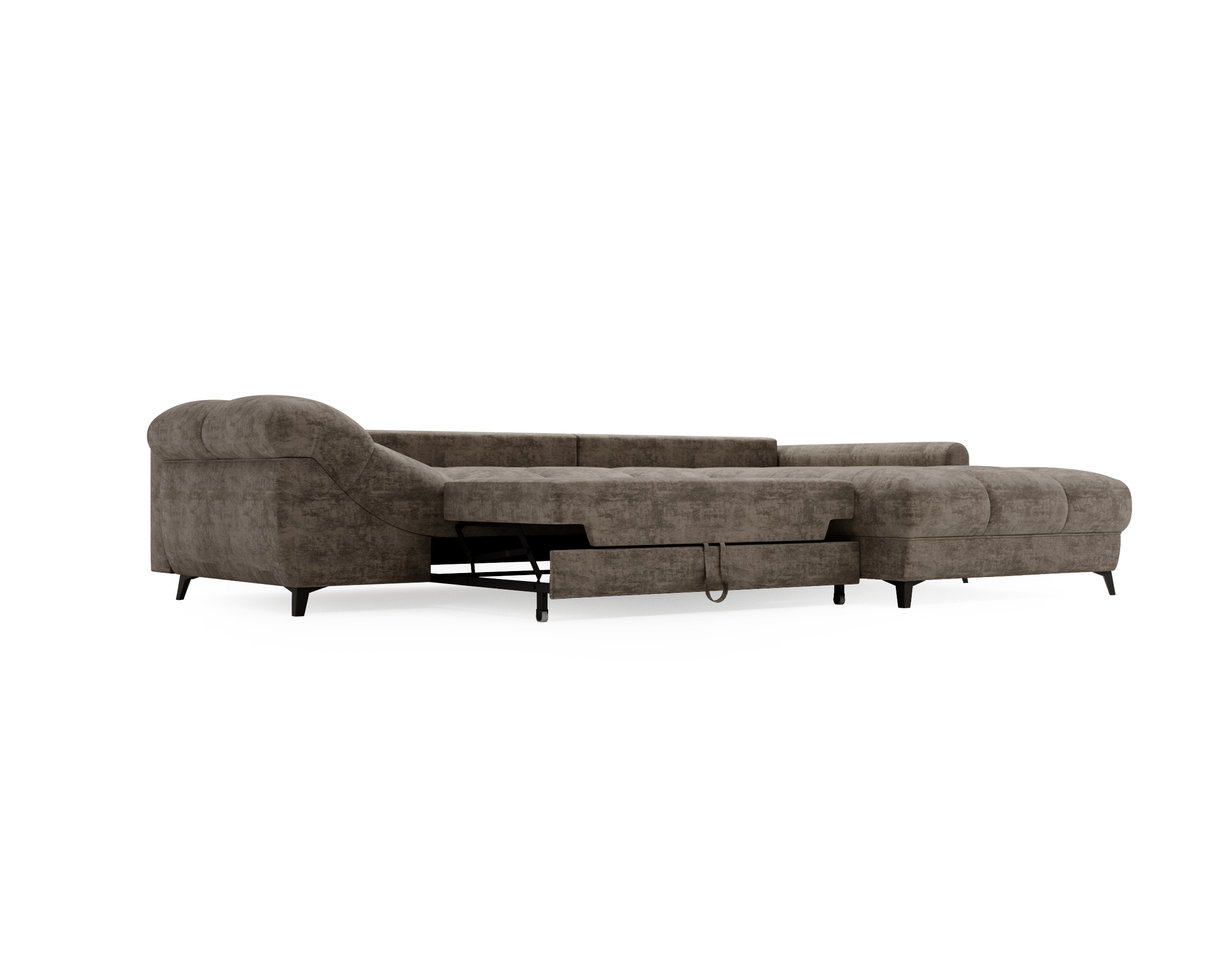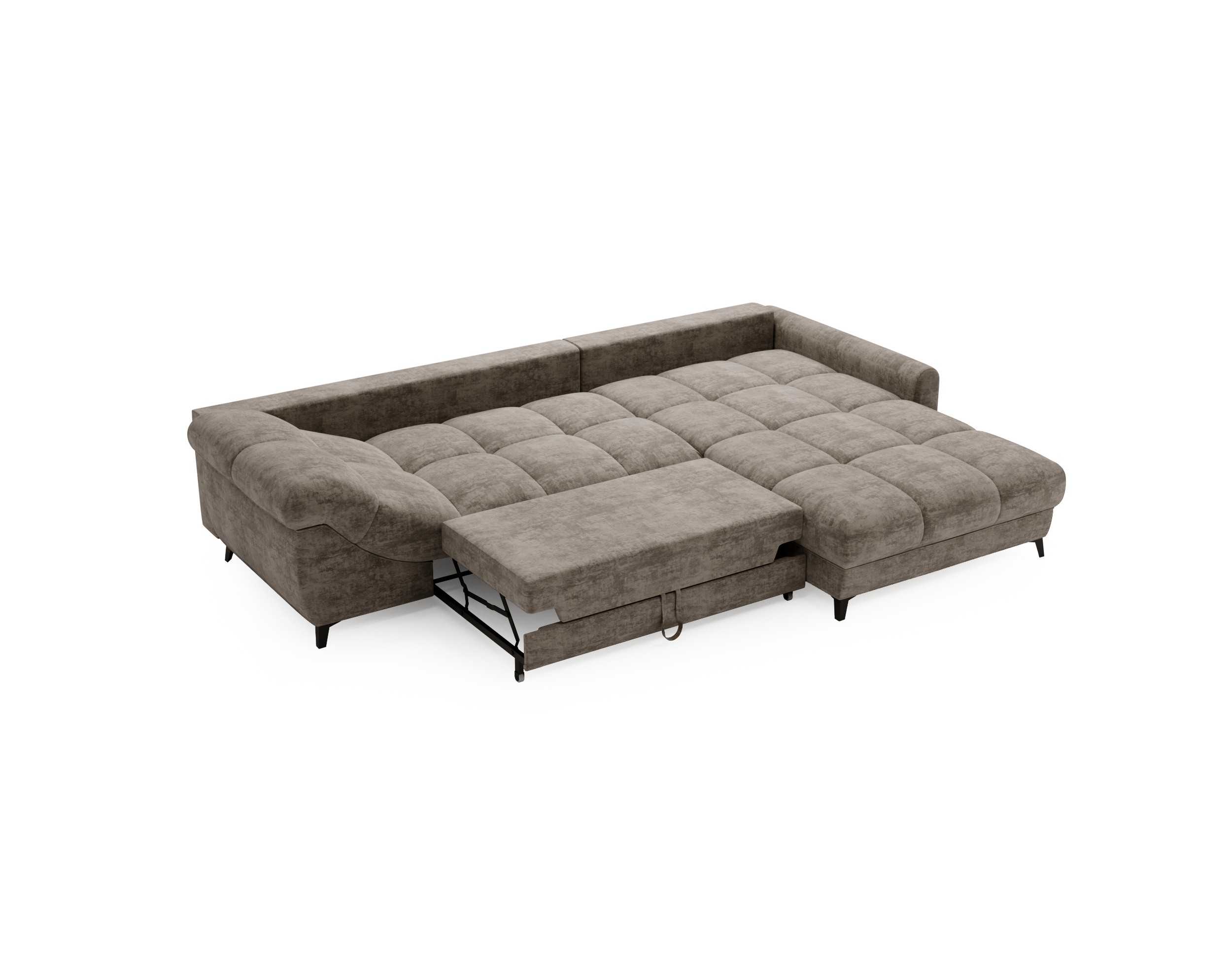 Funkcja spania – w kilka chwil zamienisz narożnik w komfortowe, przestronne łóżko dla dwóch osób dzięki systemowi delfin.