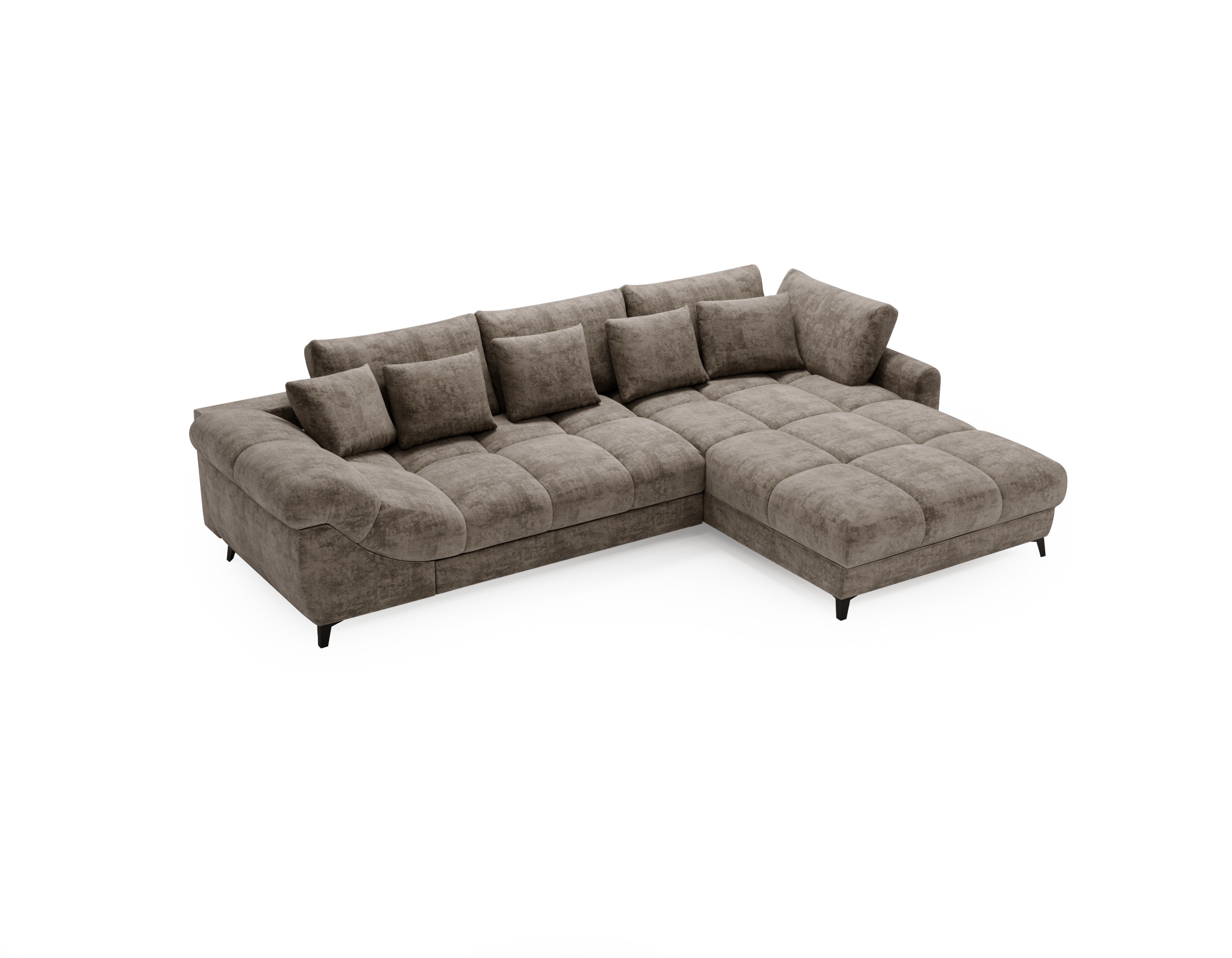 Narożnik Lettica w kształcie litery L to idealne połączenie nowoczesnego designu, komfortu i praktycznych rozwiązań. Dzięki możliwości wyboru wersji prawo- lub lewostronnej świetnie dopasuje się do każdego wnętrza, stając się centralnym punktem salonu lub strefy wypoczynkowej. Tapicerowany tył sprawia, że narożnik prezentuje się efektownie również w ustawieniu „na środku pokoju”.