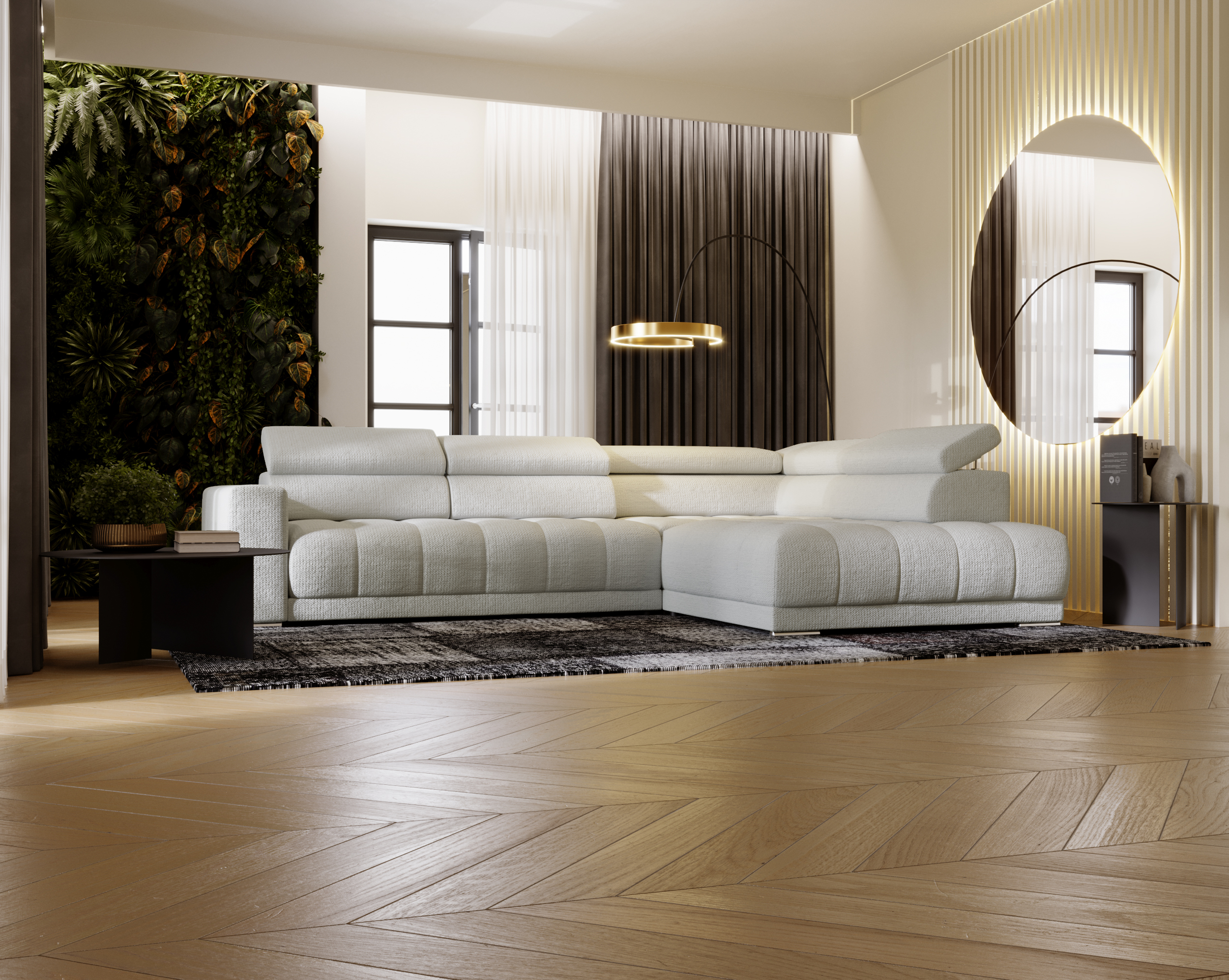 Imponujący narożnik Mojito Plus to propozycja dla osób, które cenią przestrzeń, wygodę i nowoczesne rozwiązania. Duży format w kształcie litery L sprawia, że model doskonale wypełnia przestronny salon, tworząc komfortową strefę relaksu dla całej rodziny. Regulowane elektrycznie siedzisko oraz dopracowane detale podkreślają jego nowoczesny charakter i funkcjonalność na najwyższym poziomie.