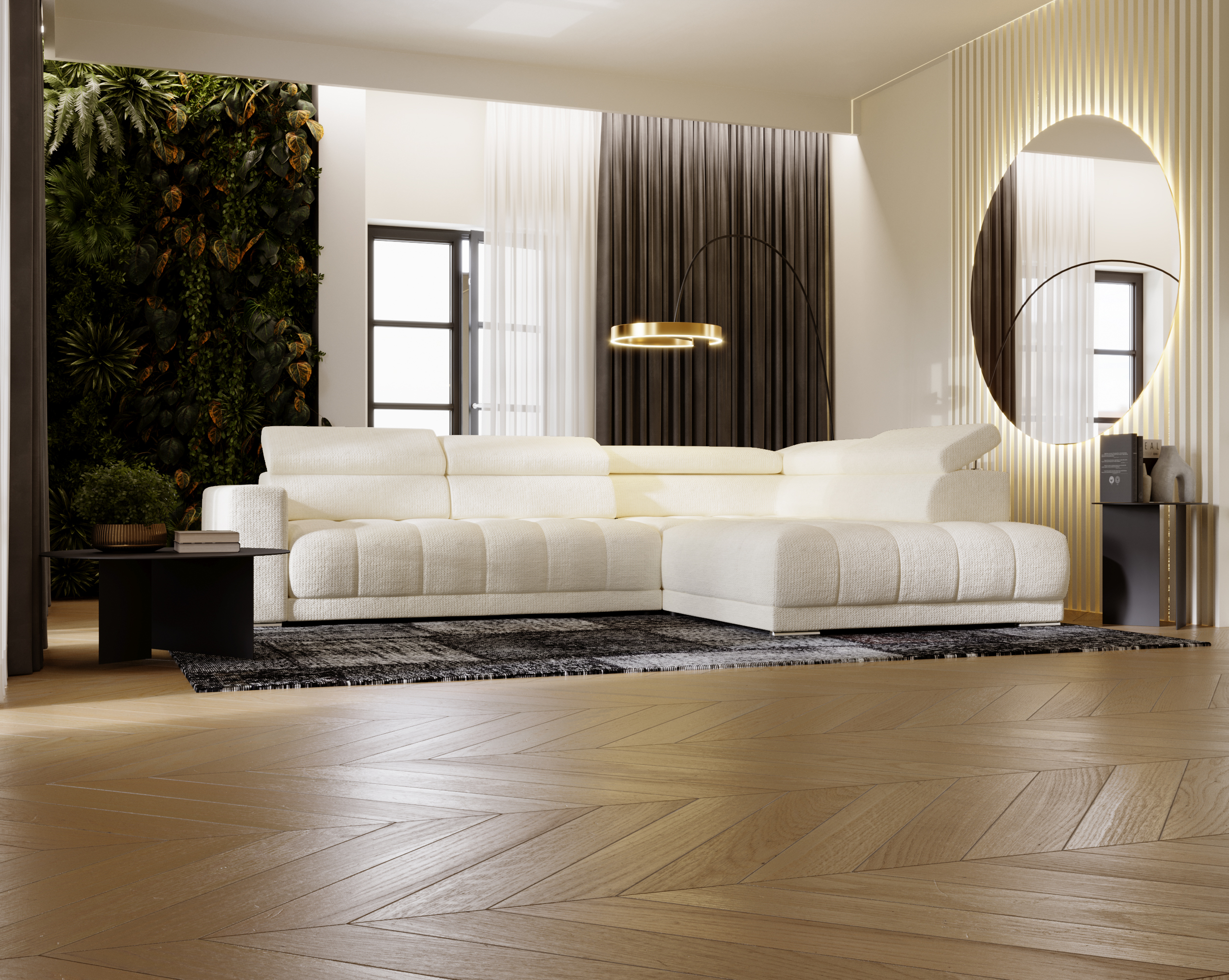 Imponujący narożnik Mojito Plus to propozycja dla osób, które cenią przestrzeń, wygodę i nowoczesne rozwiązania. Duży format w kształcie litery L sprawia, że model doskonale wypełnia przestronny salon, tworząc komfortową strefę relaksu dla całej rodziny. Regulowane elektrycznie siedzisko oraz dopracowane detale podkreślają jego nowoczesny charakter i funkcjonalność na najwyższym poziomie.