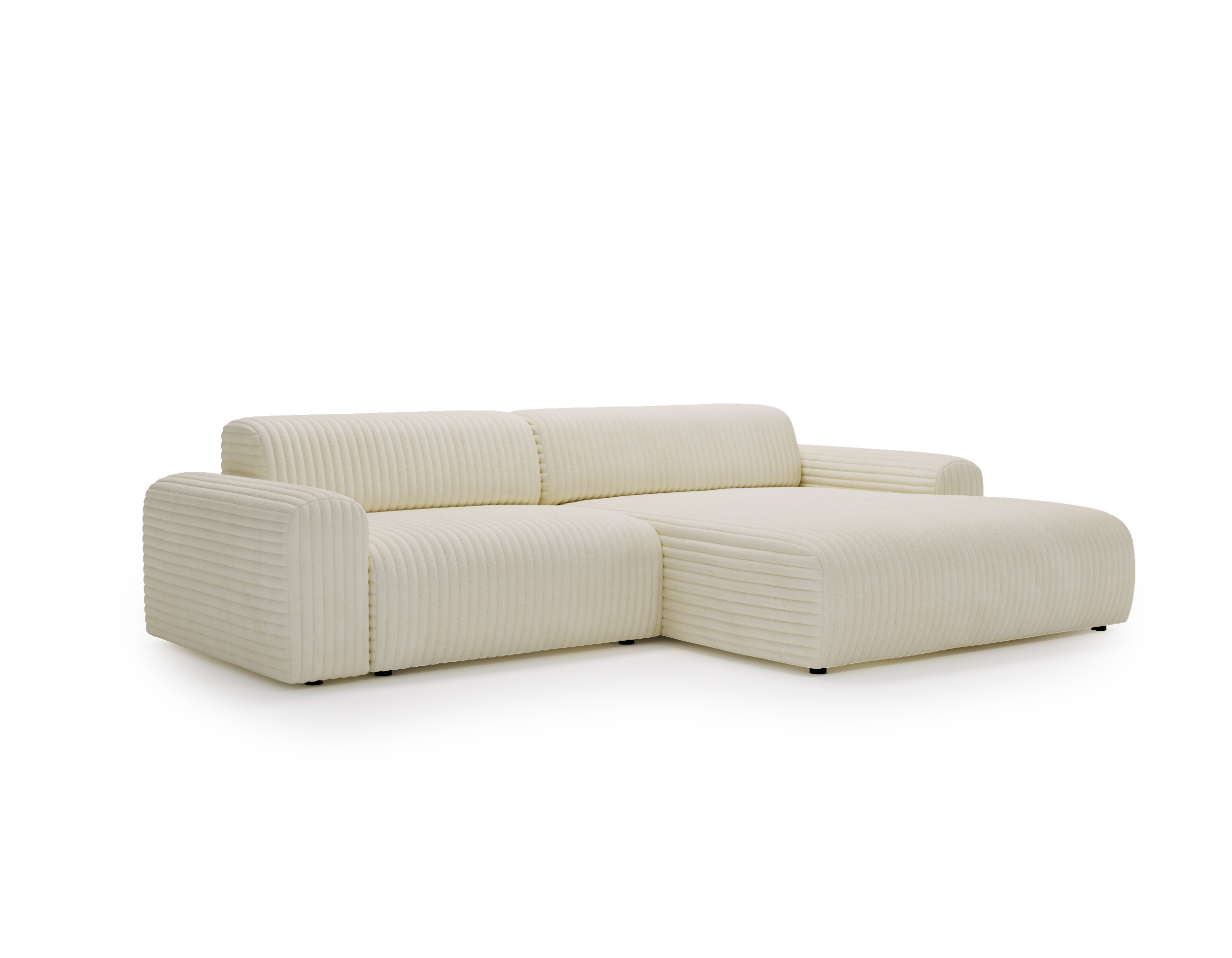 Połączenie pianki poliuretanowej oraz sprężyn falistych zapewnia optymalne podparcie ciała, elastyczność i wysoką odporność na odkształcenia. Wysokość siedziska gwarantuje komfort zarówno podczas codziennego wypoczynku, jak i wstawania. Duża powierzchnia narożnika w kształcie L pozwala wygodnie usiąść kilku osobom jednocześnie – bez kompromisów i ścisku.