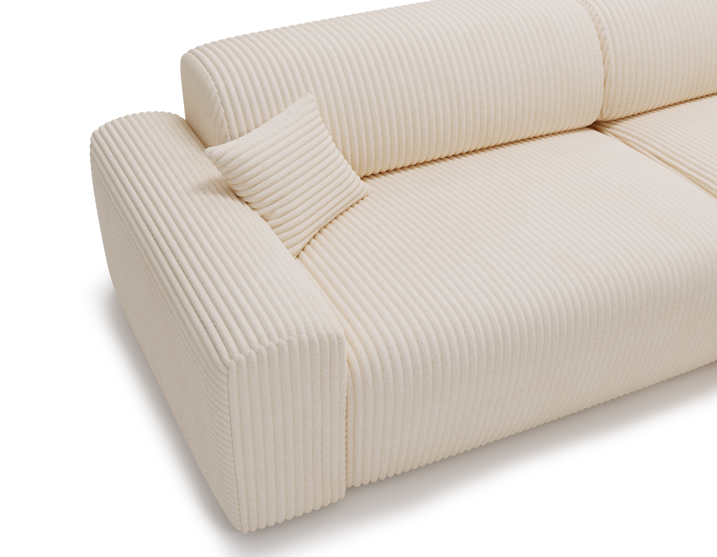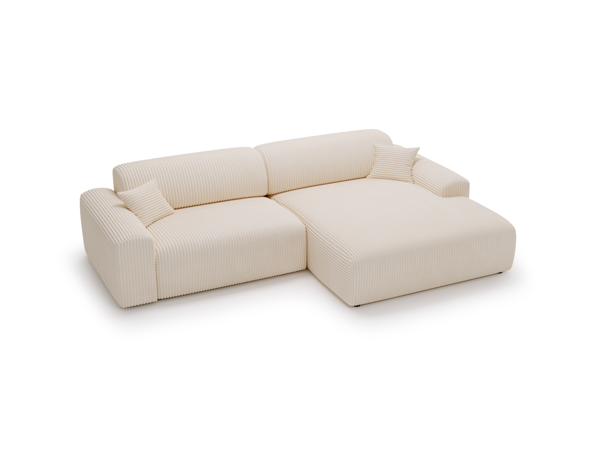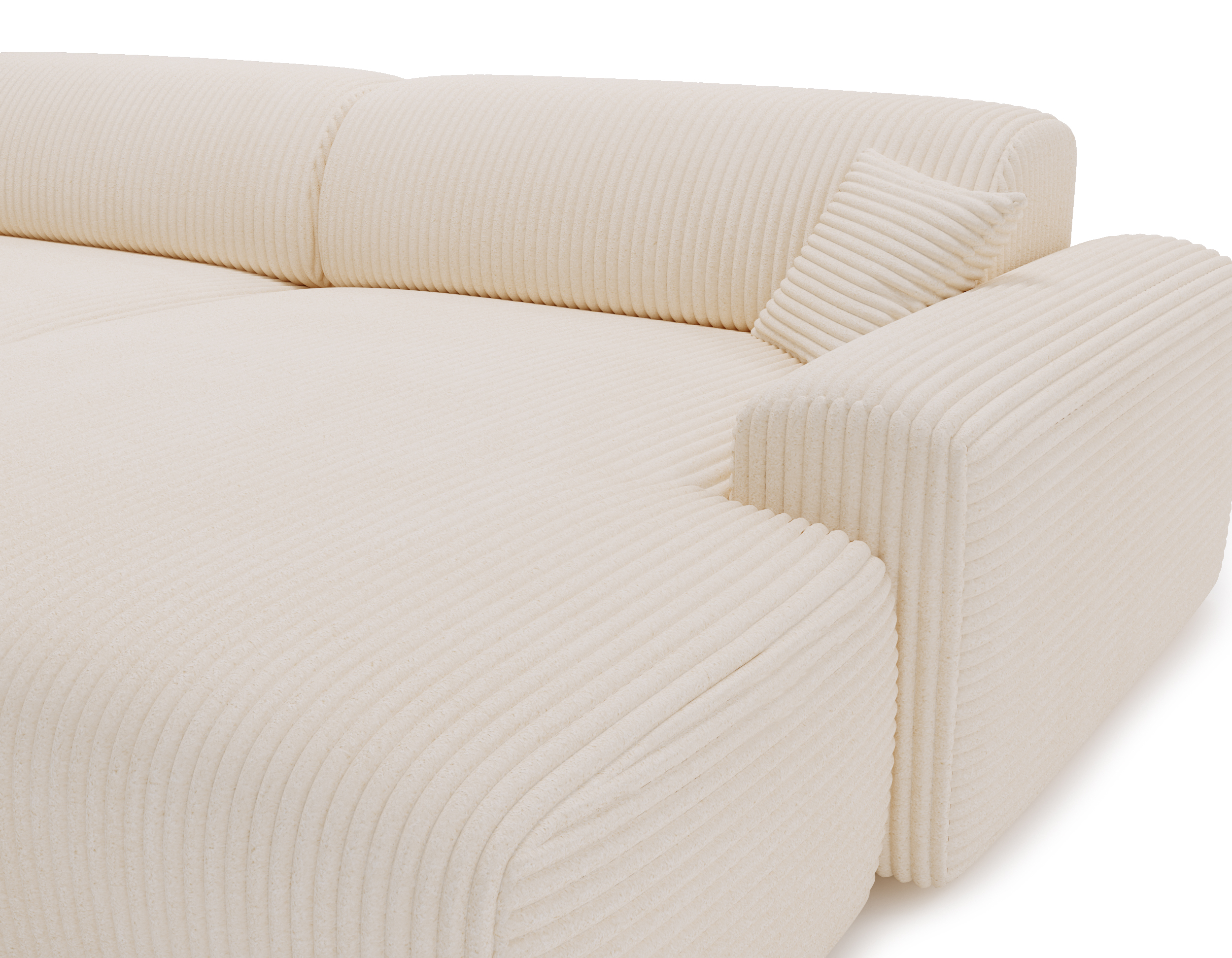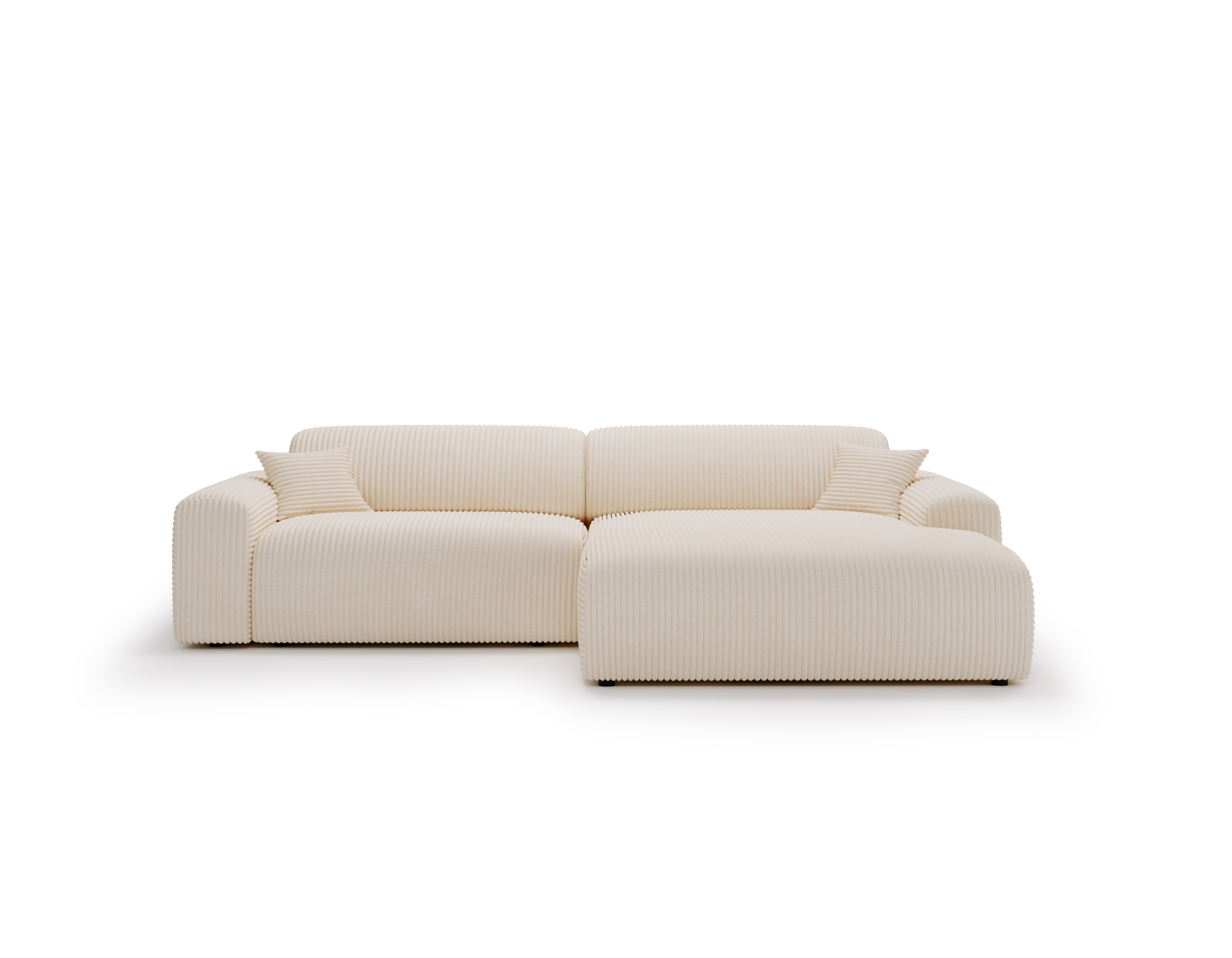 Połączenie pianki poliuretanowej oraz sprężyn falistych zapewnia optymalne podparcie ciała, elastyczność i wysoką odporność na odkształcenia. Wysokość siedziska gwarantuje komfort zarówno podczas codziennego wypoczynku, jak i wstawania. Duża powierzchnia narożnika w kształcie L pozwala wygodnie usiąść kilku osobom jednocześnie – bez kompromisów i ścisku.