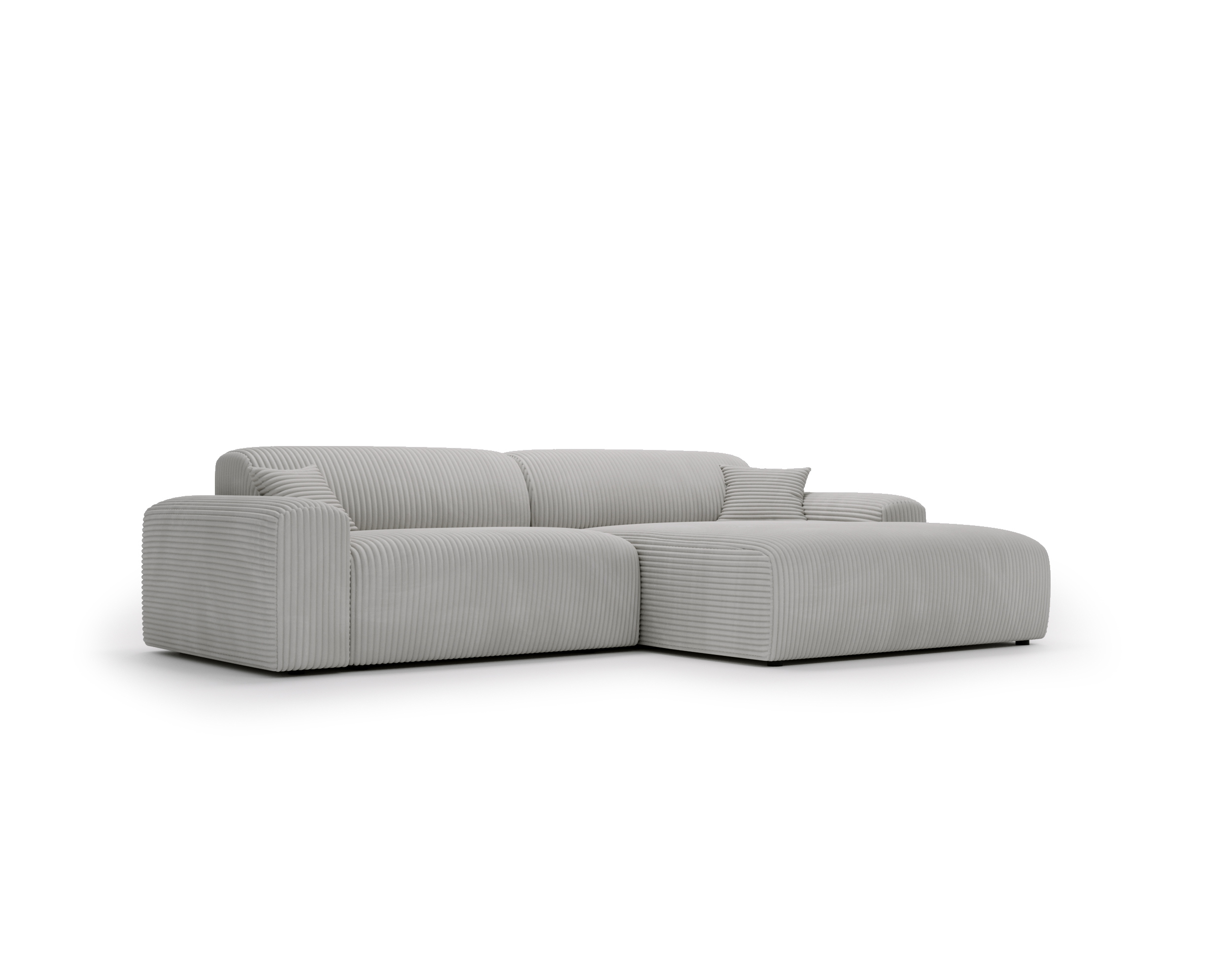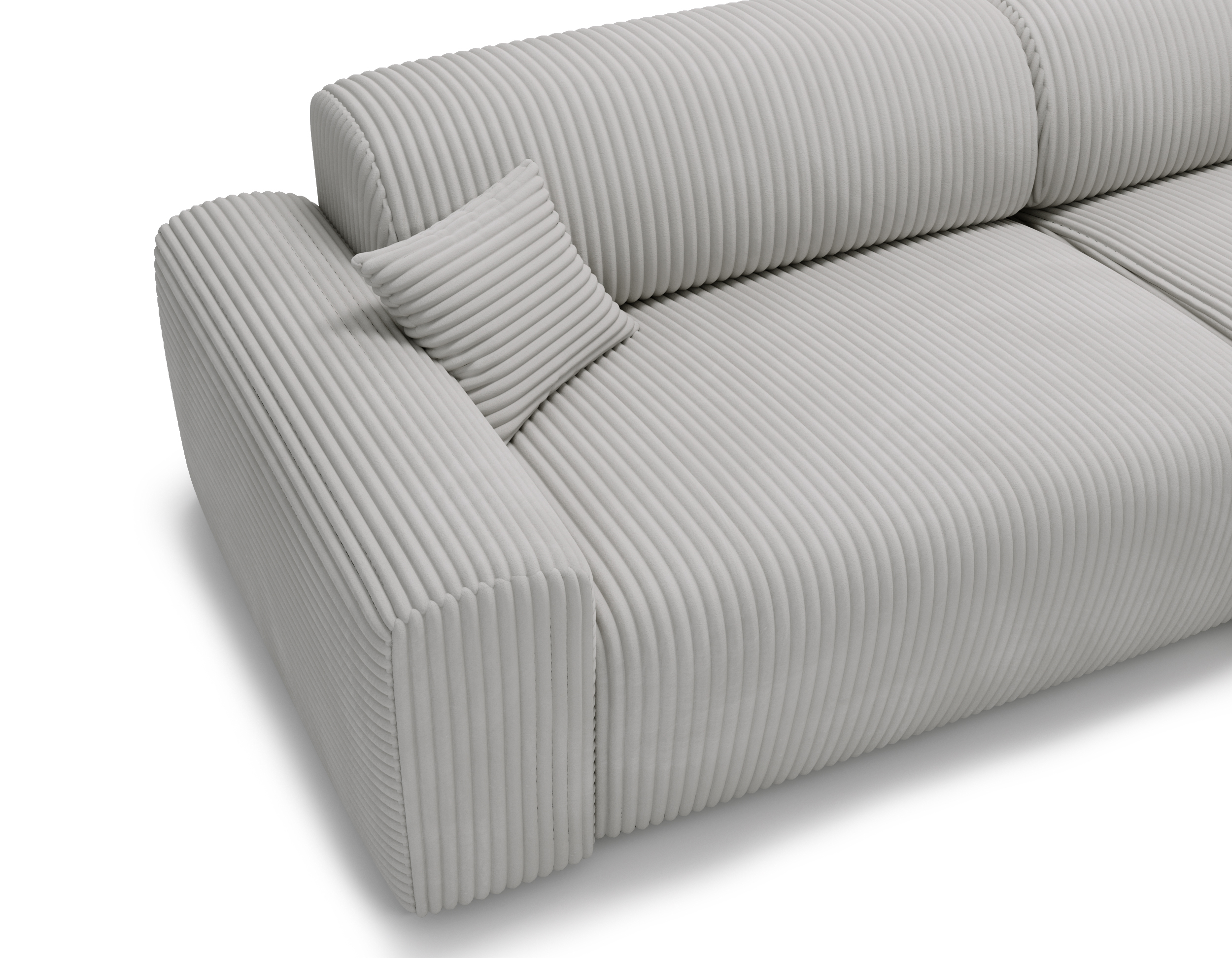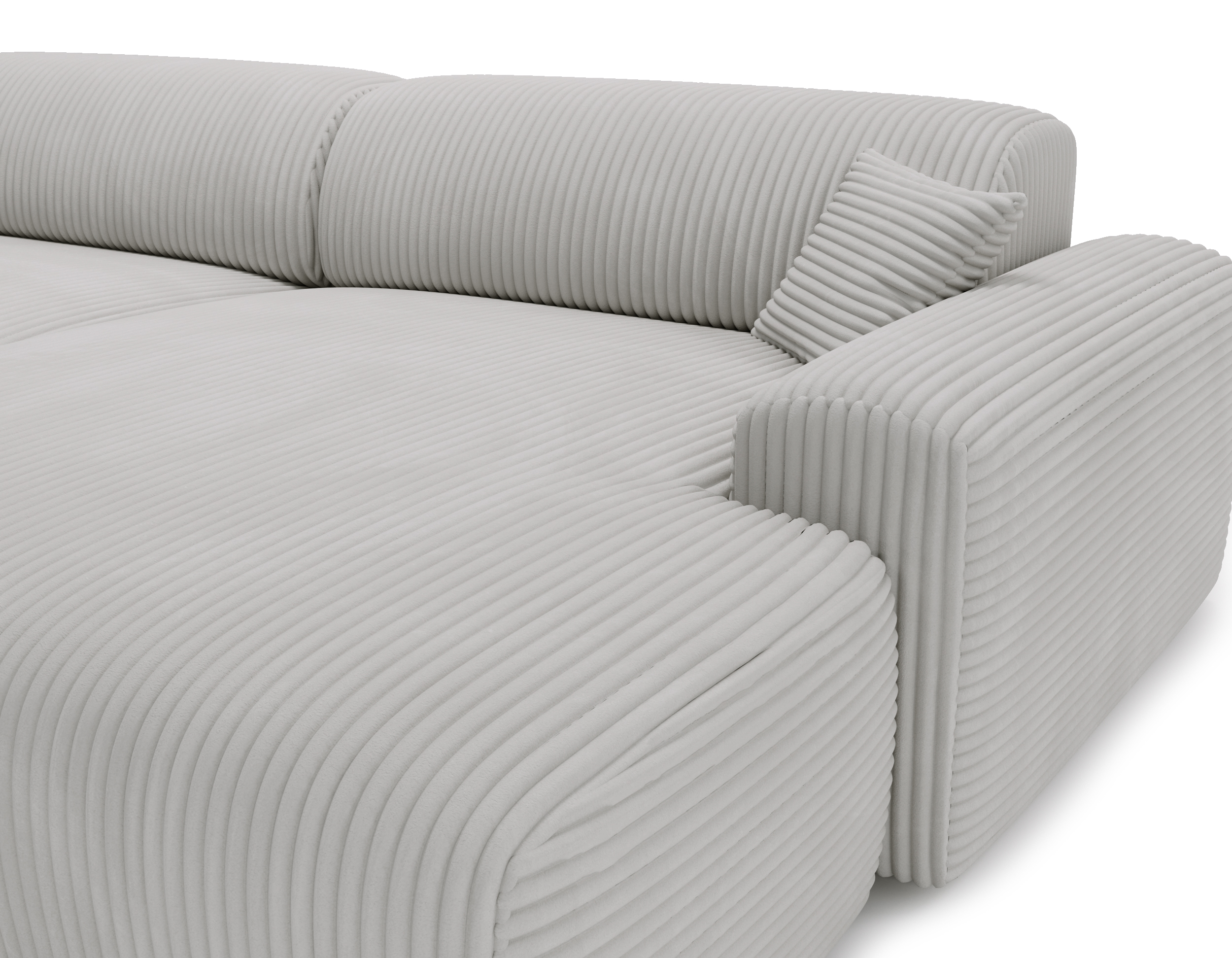 Połączenie pianki poliuretanowej oraz sprężyn falistych zapewnia optymalne podparcie ciała, elastyczność i wysoką odporność na odkształcenia. Wysokość siedziska gwarantuje komfort zarówno podczas codziennego wypoczynku, jak i wstawania. Duża powierzchnia narożnika w kształcie L pozwala wygodnie usiąść kilku osobom jednocześnie – bez kompromisów i ścisku.