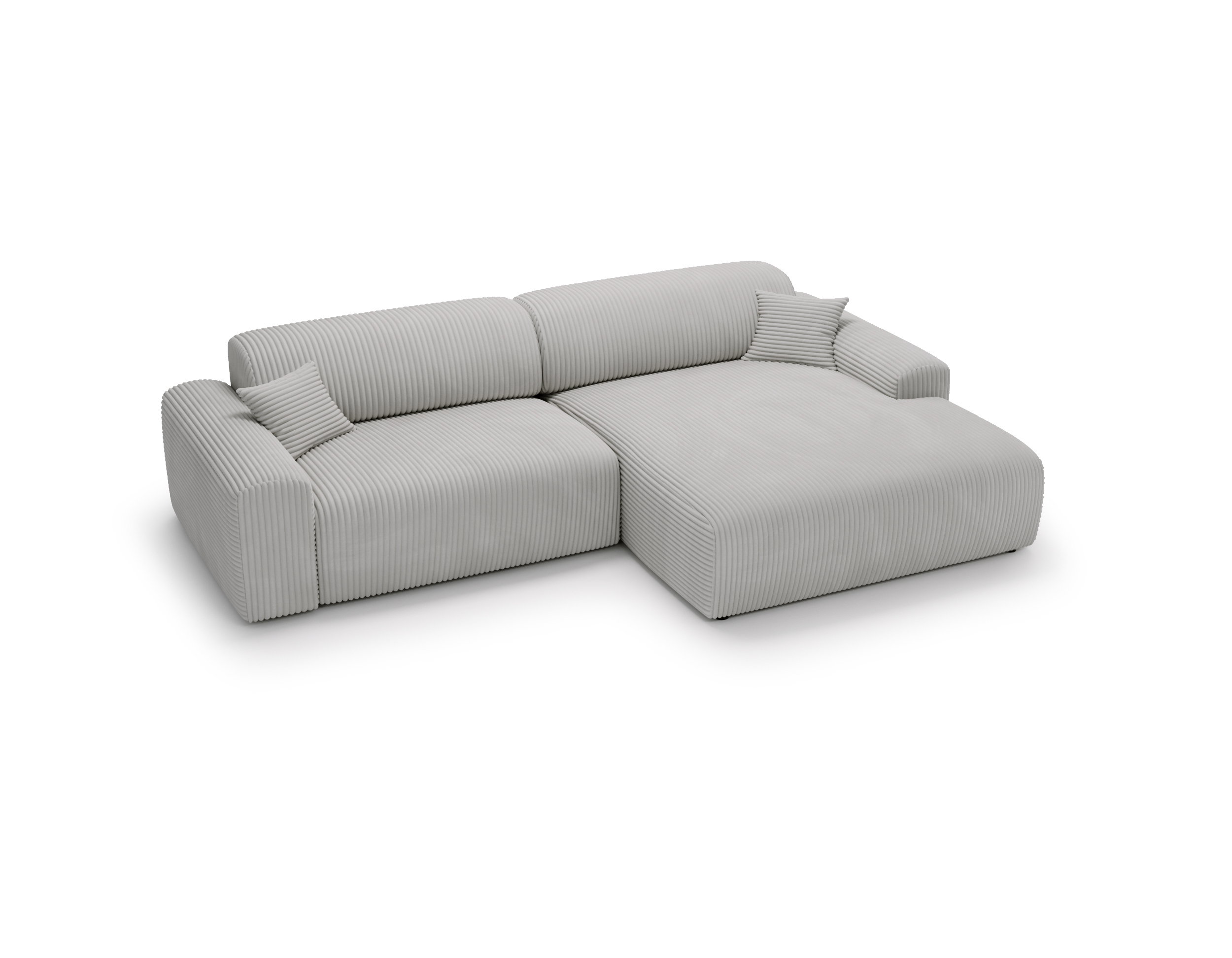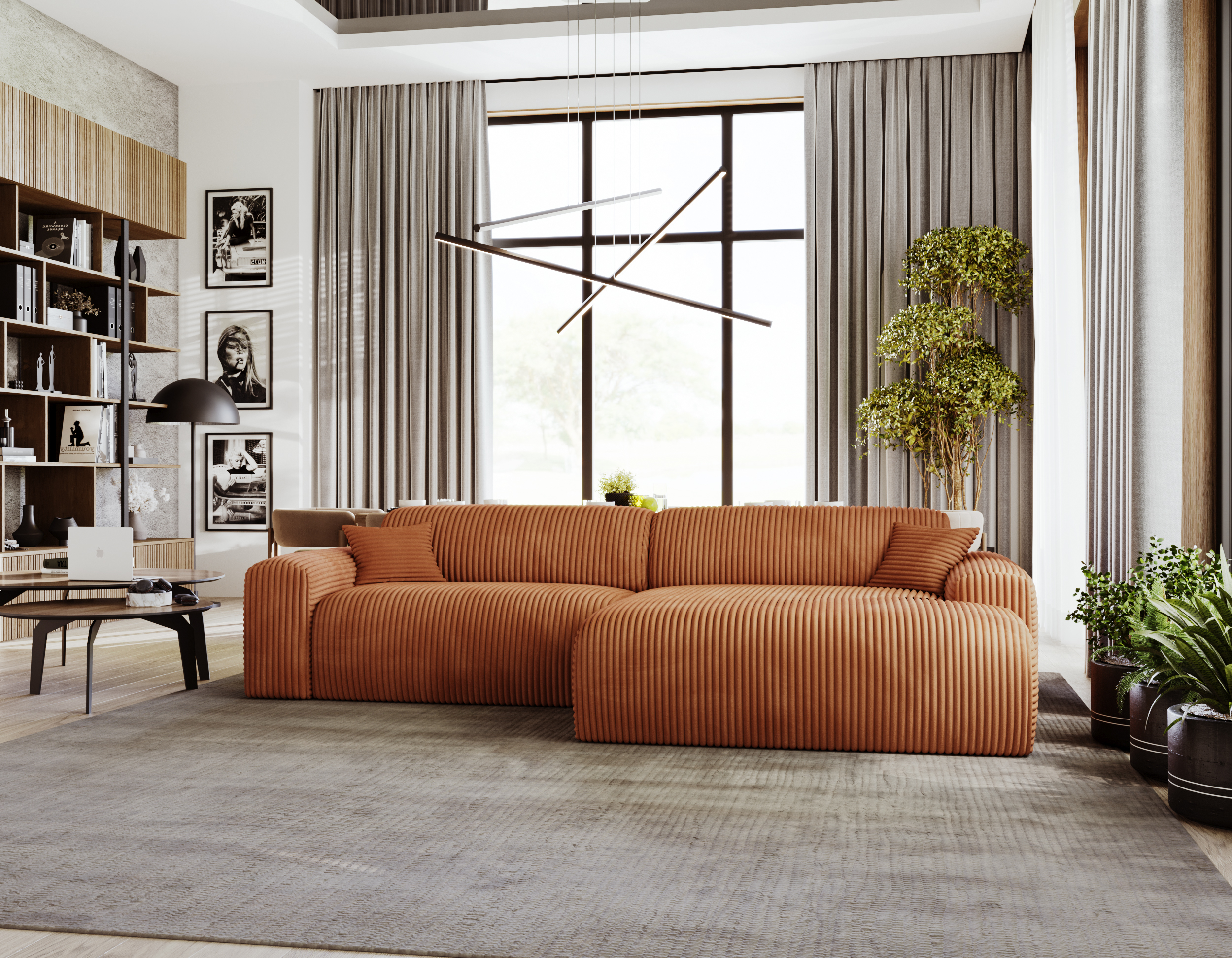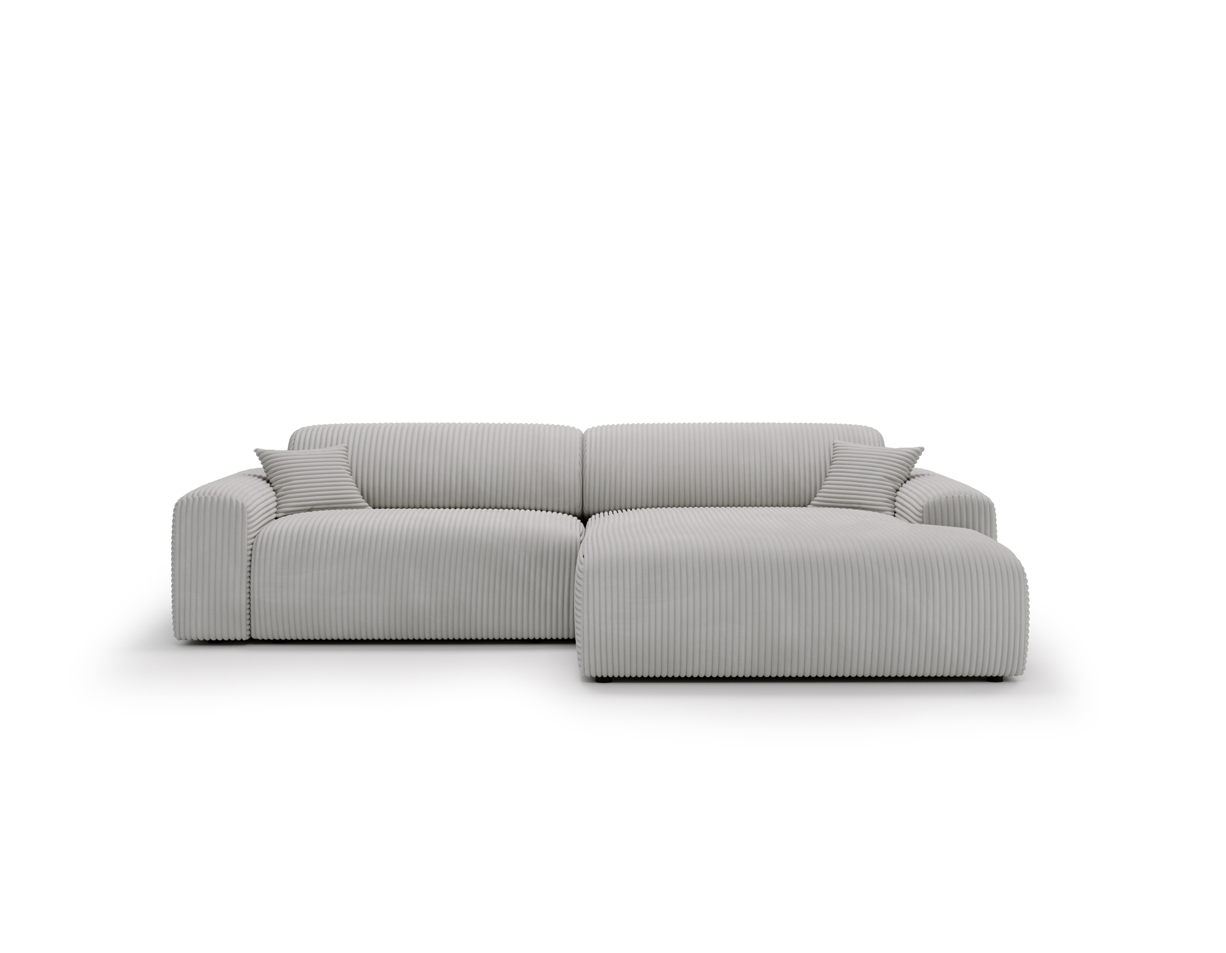 Połączenie pianki poliuretanowej oraz sprężyn falistych zapewnia optymalne podparcie ciała, elastyczność i wysoką odporność na odkształcenia. Wysokość siedziska gwarantuje komfort zarówno podczas codziennego wypoczynku, jak i wstawania. Duża powierzchnia narożnika w kształcie L pozwala wygodnie usiąść kilku osobom jednocześnie – bez kompromisów i ścisku.