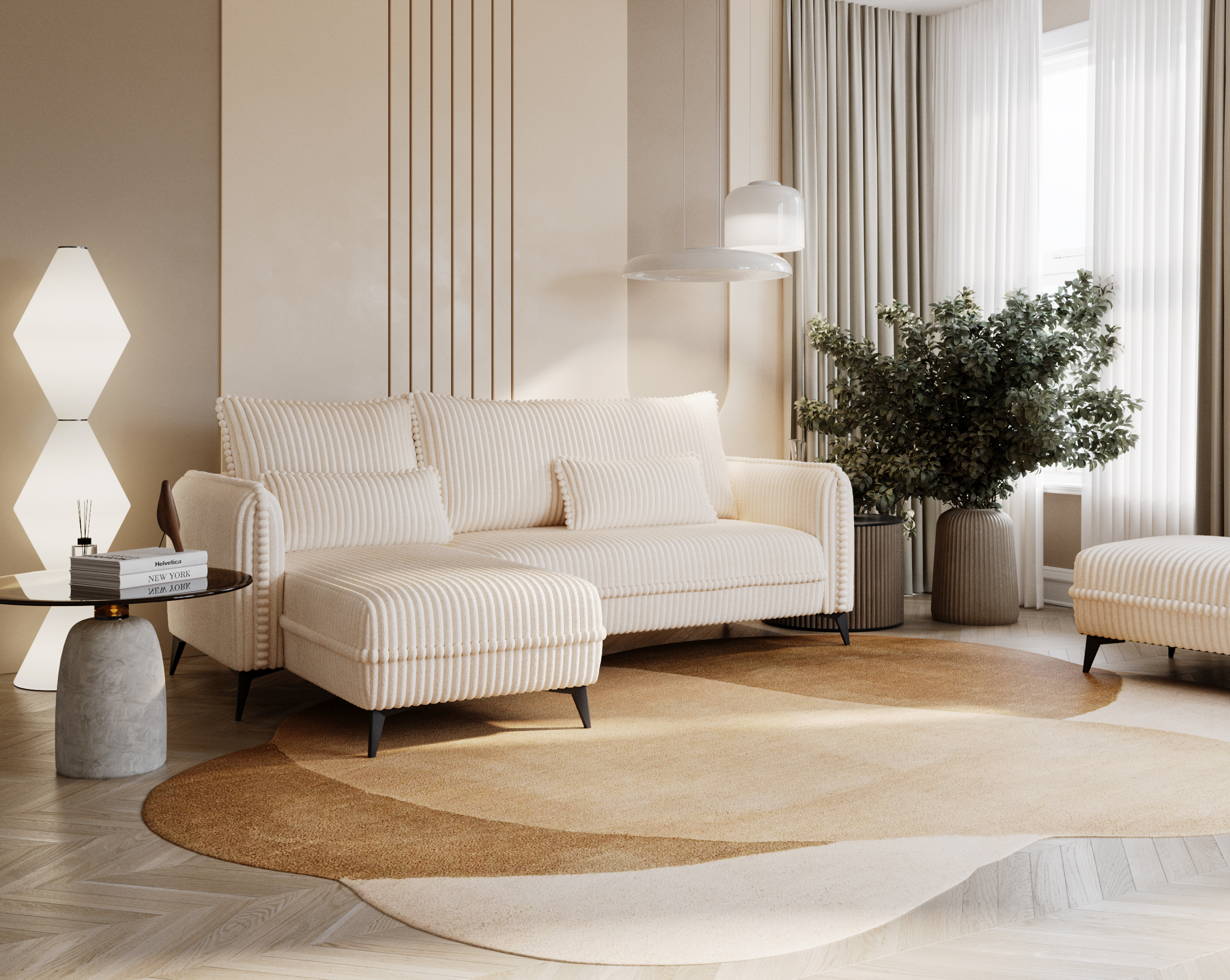 Narożnik Storm z pufą – Nowoczesna forma i pełna swoboda aranżacji