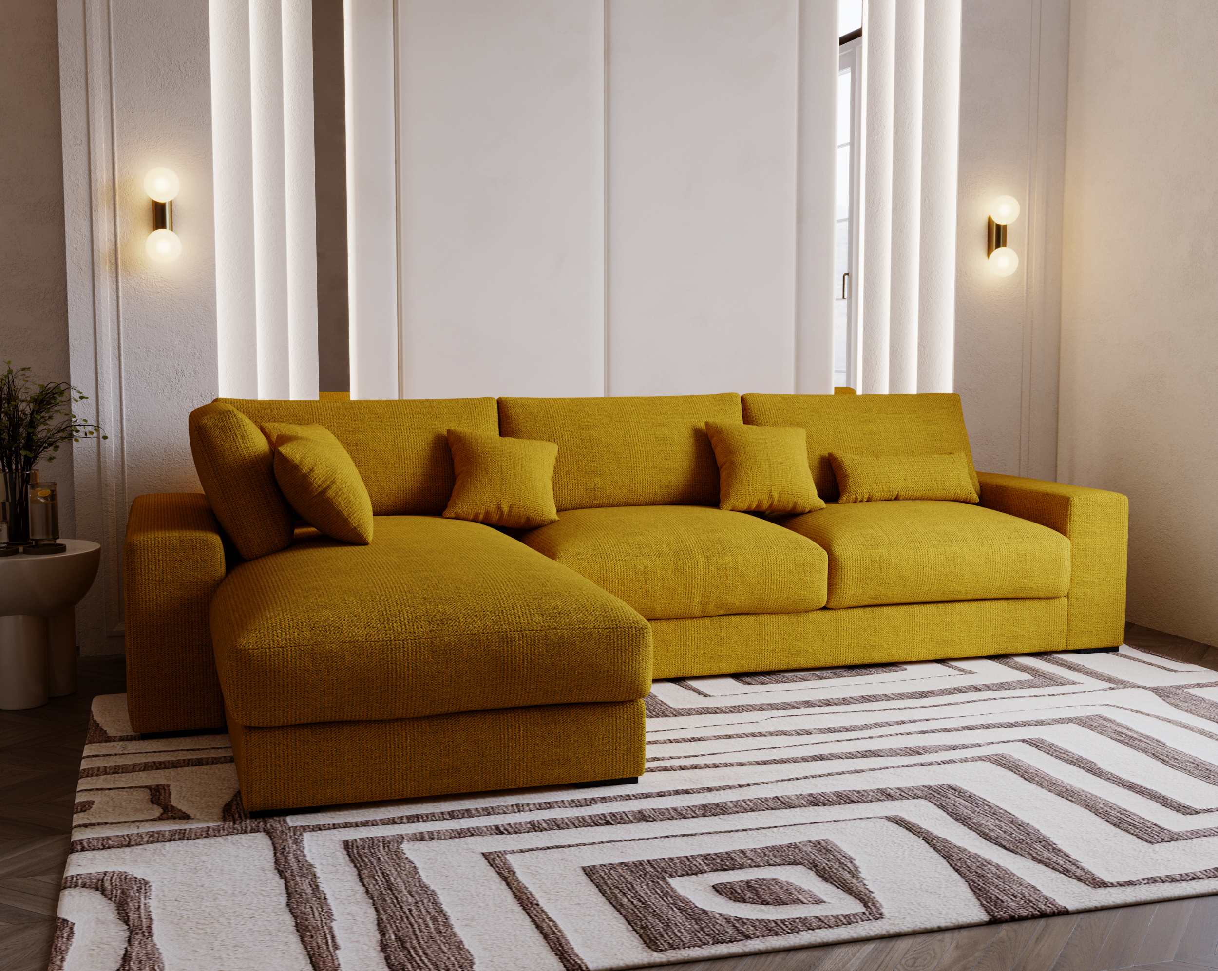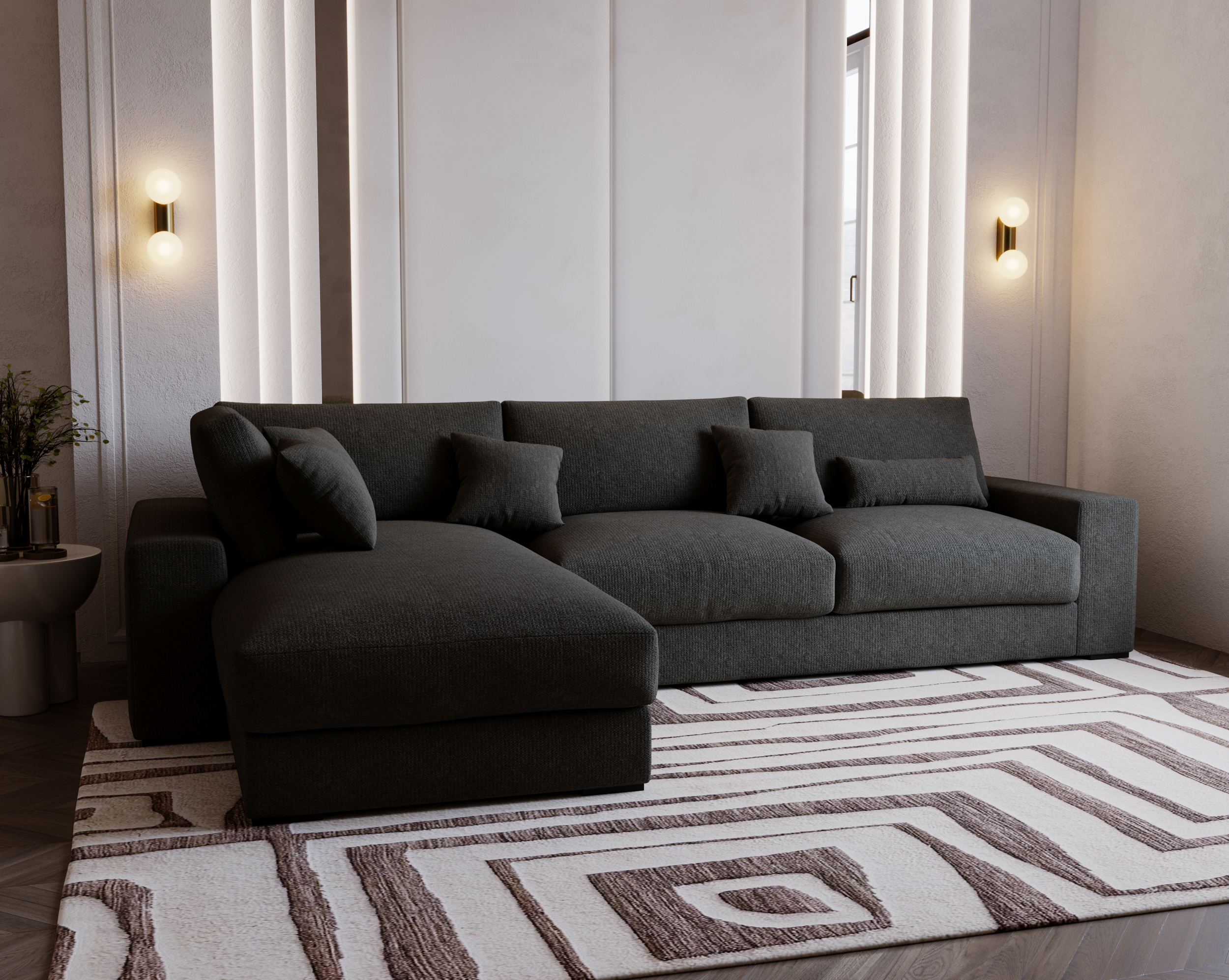 Narożnik Wild to propozycja dla osób, które cenią nowoczesny design, imponującą przestrzeń wypoczynkową i pełną swobodę aranżacji. Jego duży, efektowny kształt litery L sprawia, że staje się centralnym punktem salonu – idealnym do wspólnego relaksu, spotkań z bliskimi czy wieczornego odpoczynku.