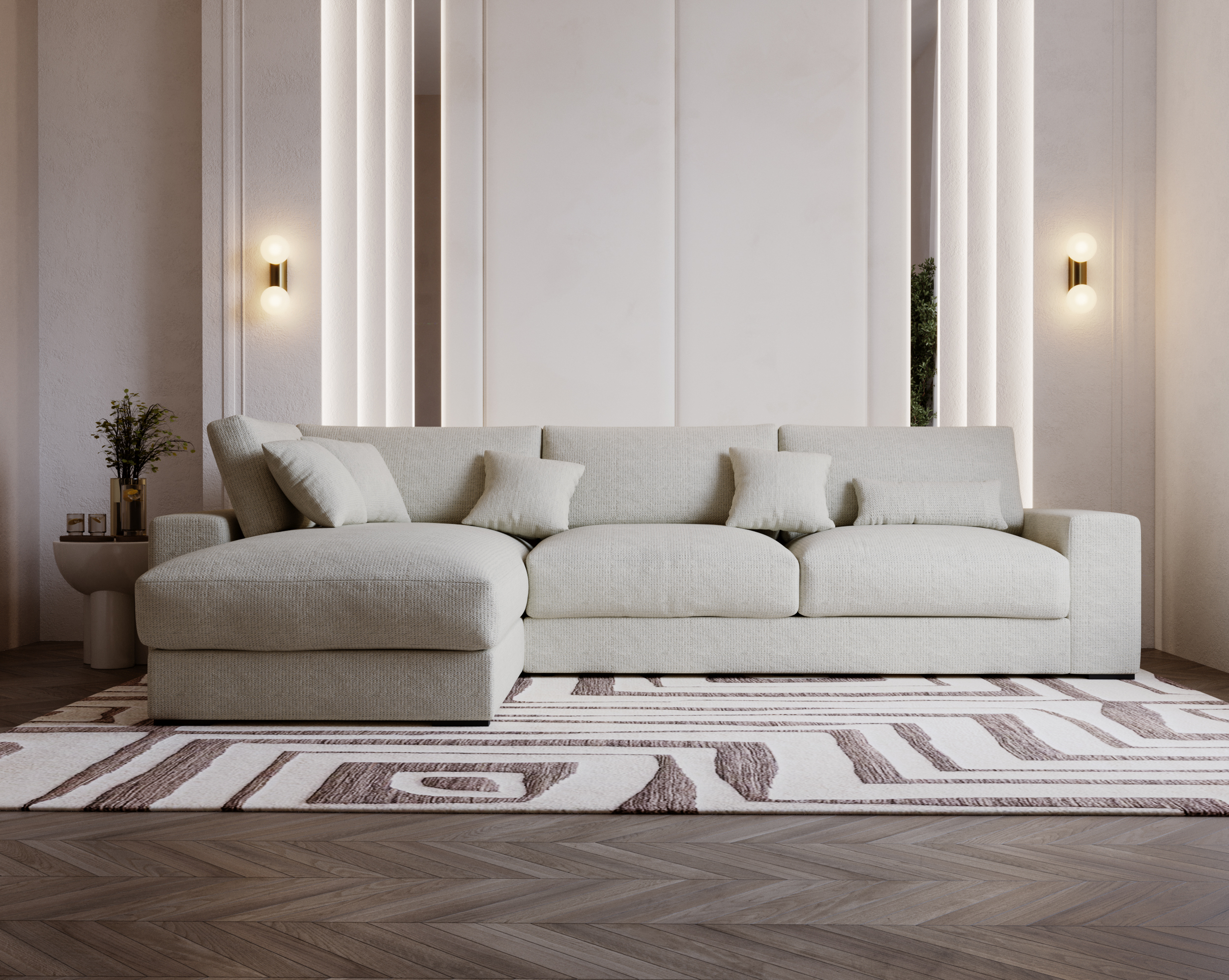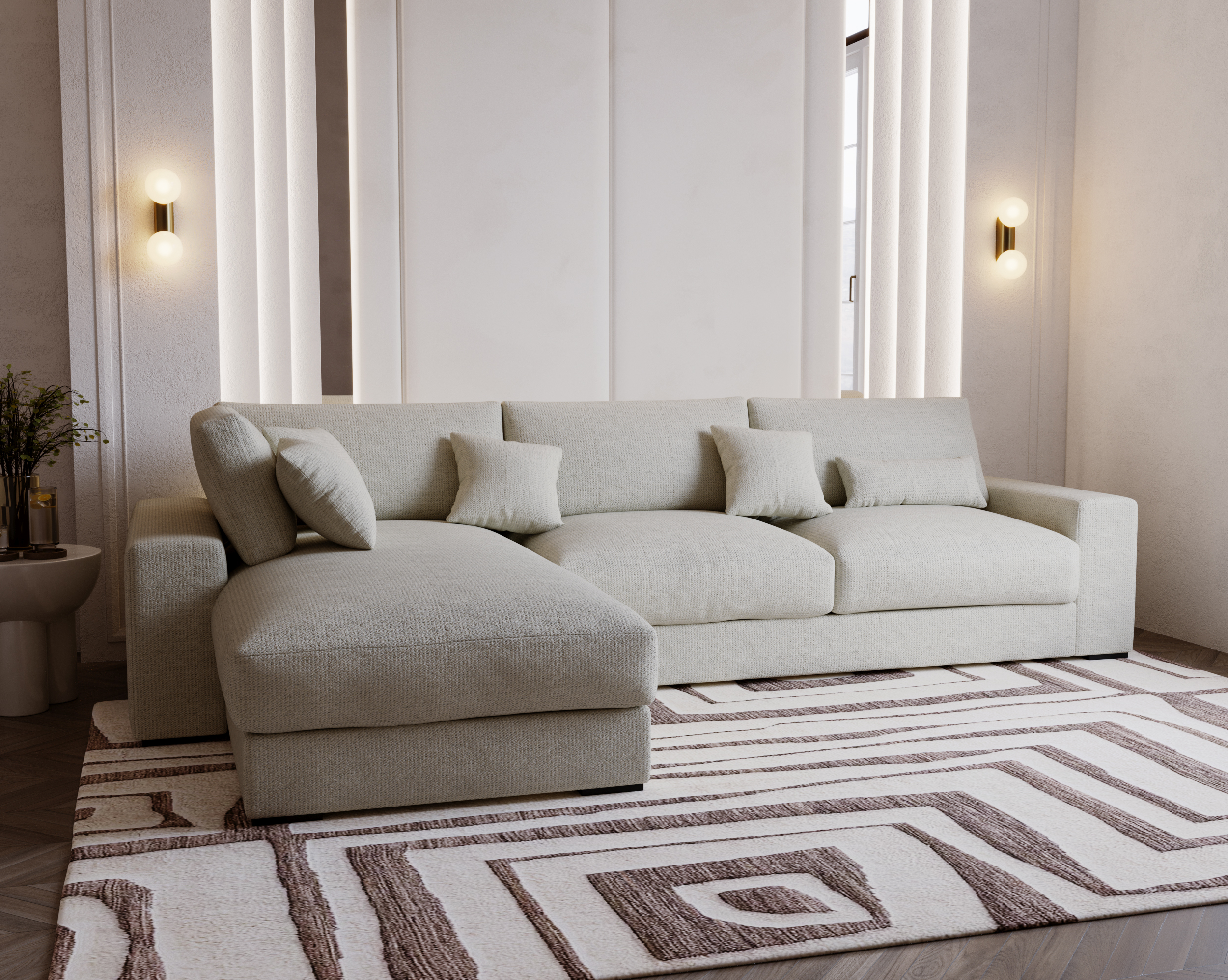 Narożnik Wild to propozycja dla osób, które cenią nowoczesny design, imponującą przestrzeń wypoczynkową i pełną swobodę aranżacji. Jego duży, efektowny kształt litery L sprawia, że staje się centralnym punktem salonu – idealnym do wspólnego relaksu, spotkań z bliskimi czy wieczornego odpoczynku.