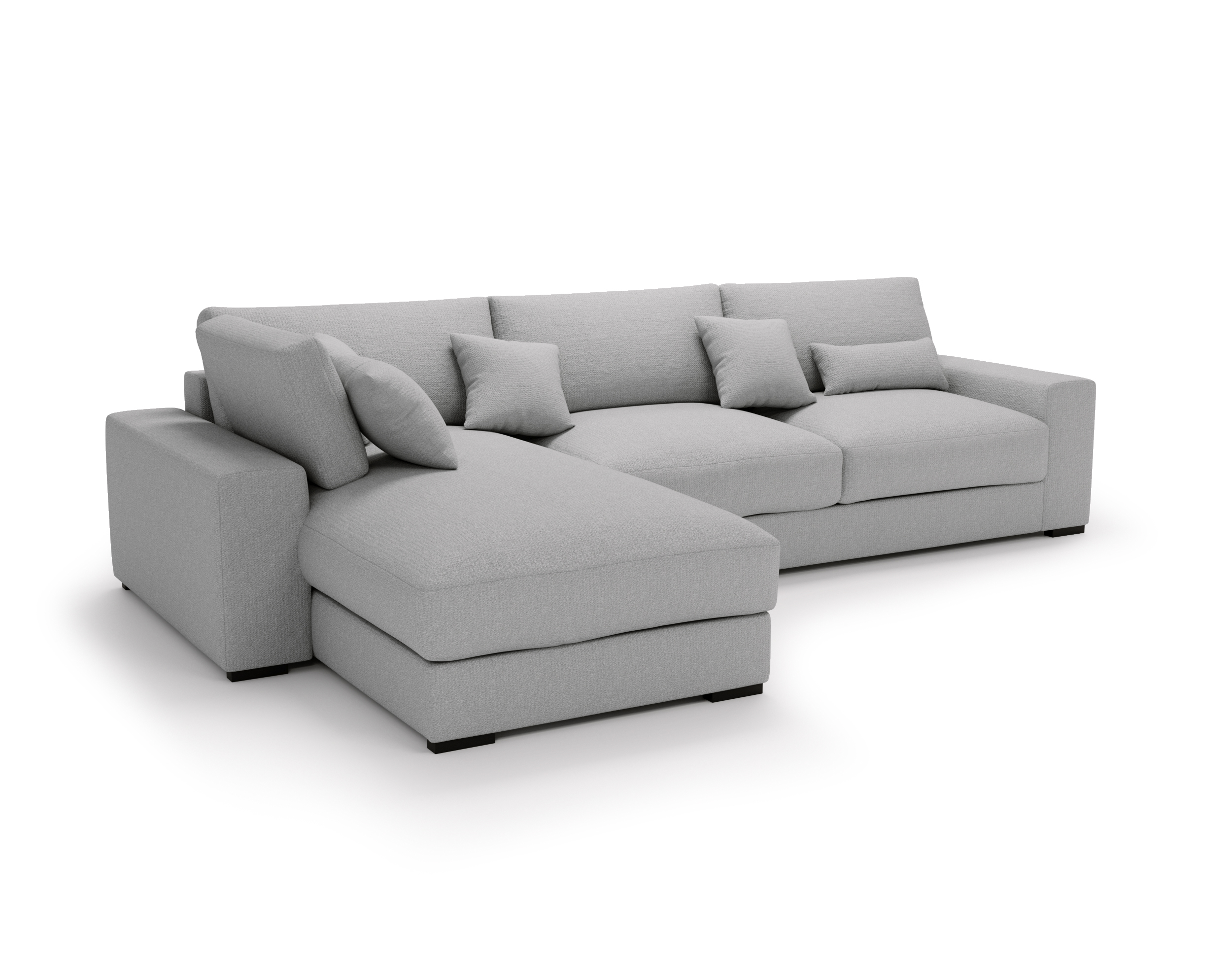 Narożnik Wild to propozycja dla osób, które cenią nowoczesny design, imponującą przestrzeń wypoczynkową i pełną swobodę aranżacji. Jego duży, efektowny kształt litery L sprawia, że staje się centralnym punktem salonu – idealnym do wspólnego relaksu, spotkań z bliskimi czy wieczornego odpoczynku.