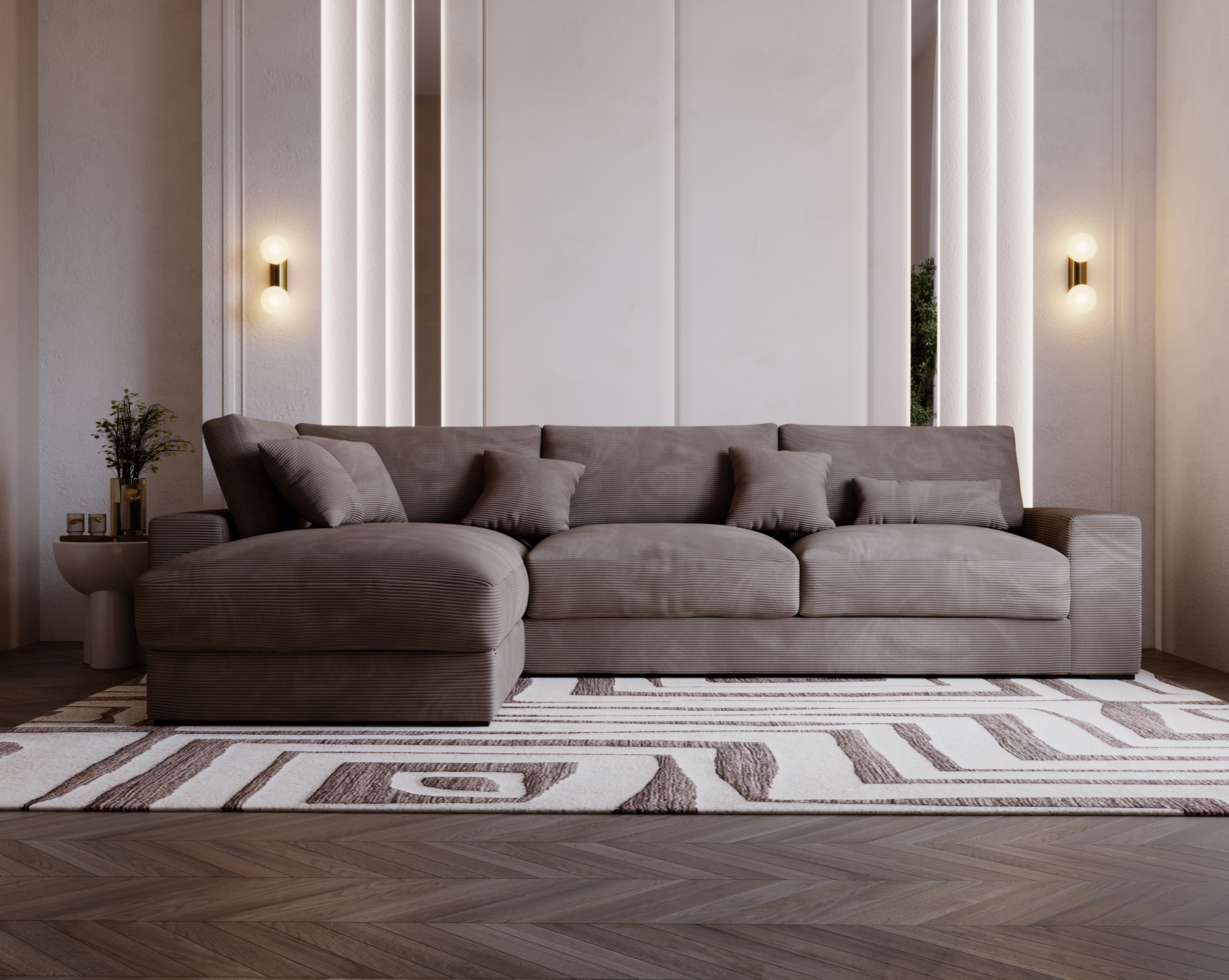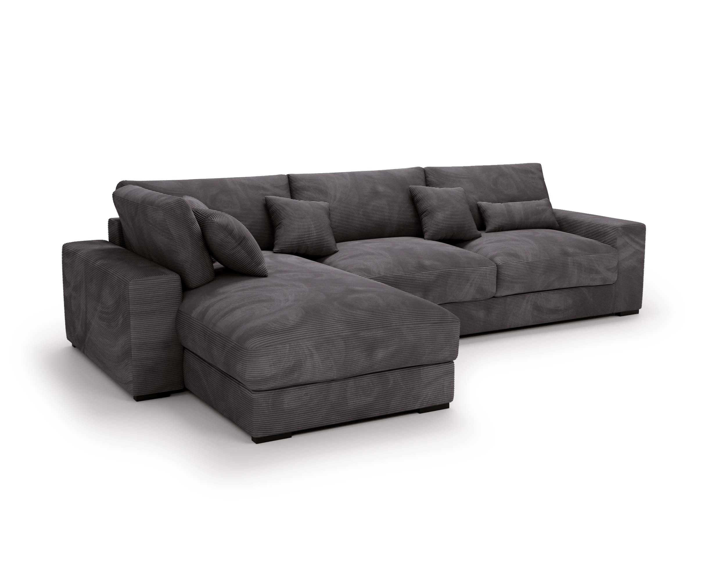 Narożnik Wild to propozycja dla osób, które cenią nowoczesny design, imponującą przestrzeń wypoczynkową i pełną swobodę aranżacji. Jego duży, efektowny kształt litery L sprawia, że staje się centralnym punktem salonu – idealnym do wspólnego relaksu, spotkań z bliskimi czy wieczornego odpoczynku.