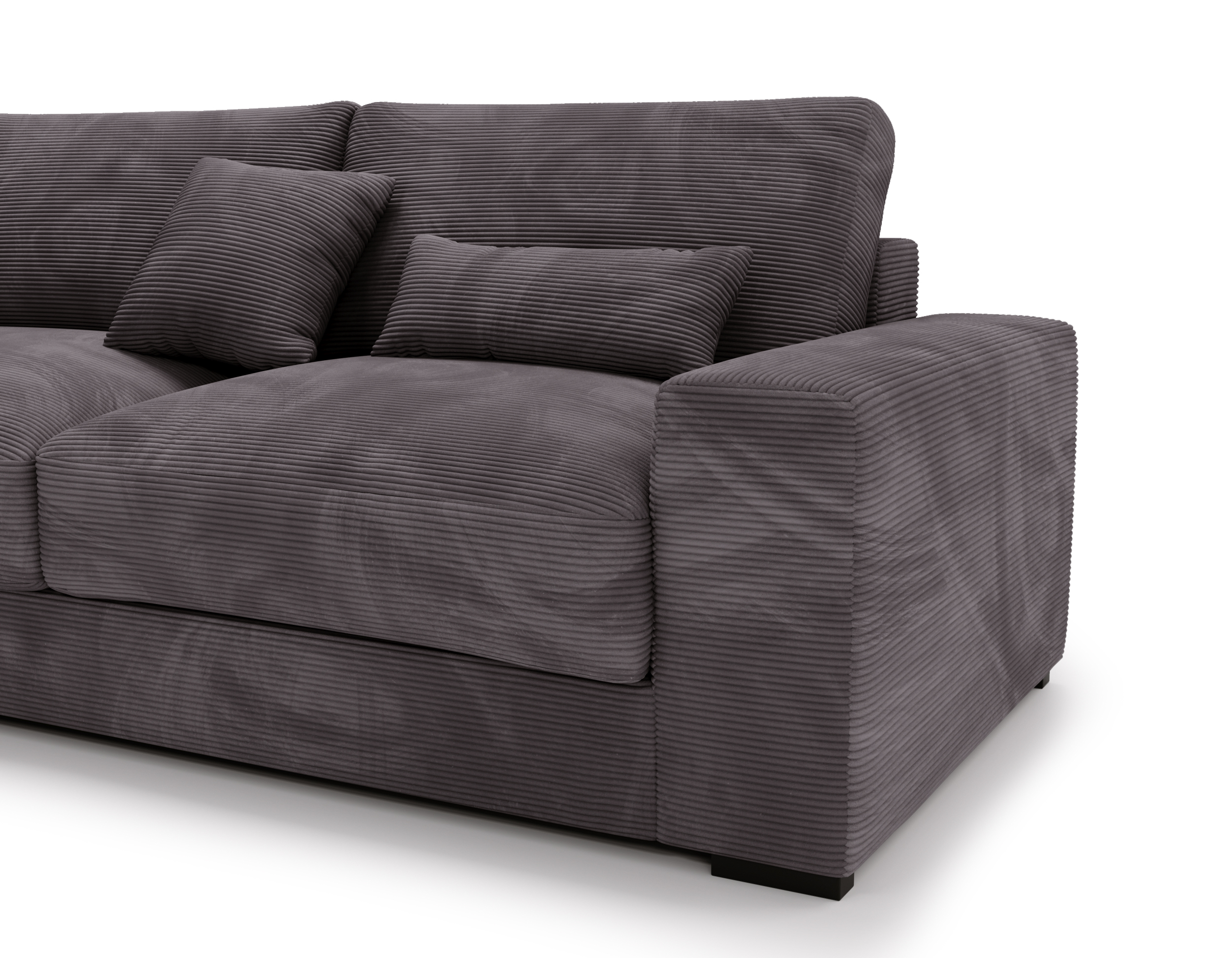 Narożnik Wild nie posiada funkcji spania ani pojemnika na pościel – jego projekt skupia się na maksymalnym komforcie codziennego wypoczynku i nowoczesnej, reprezentacyjnej formie. To doskonały wybór do przestronnych salonów, w których liczy się wygoda, estetyka i swoboda aranżacji.