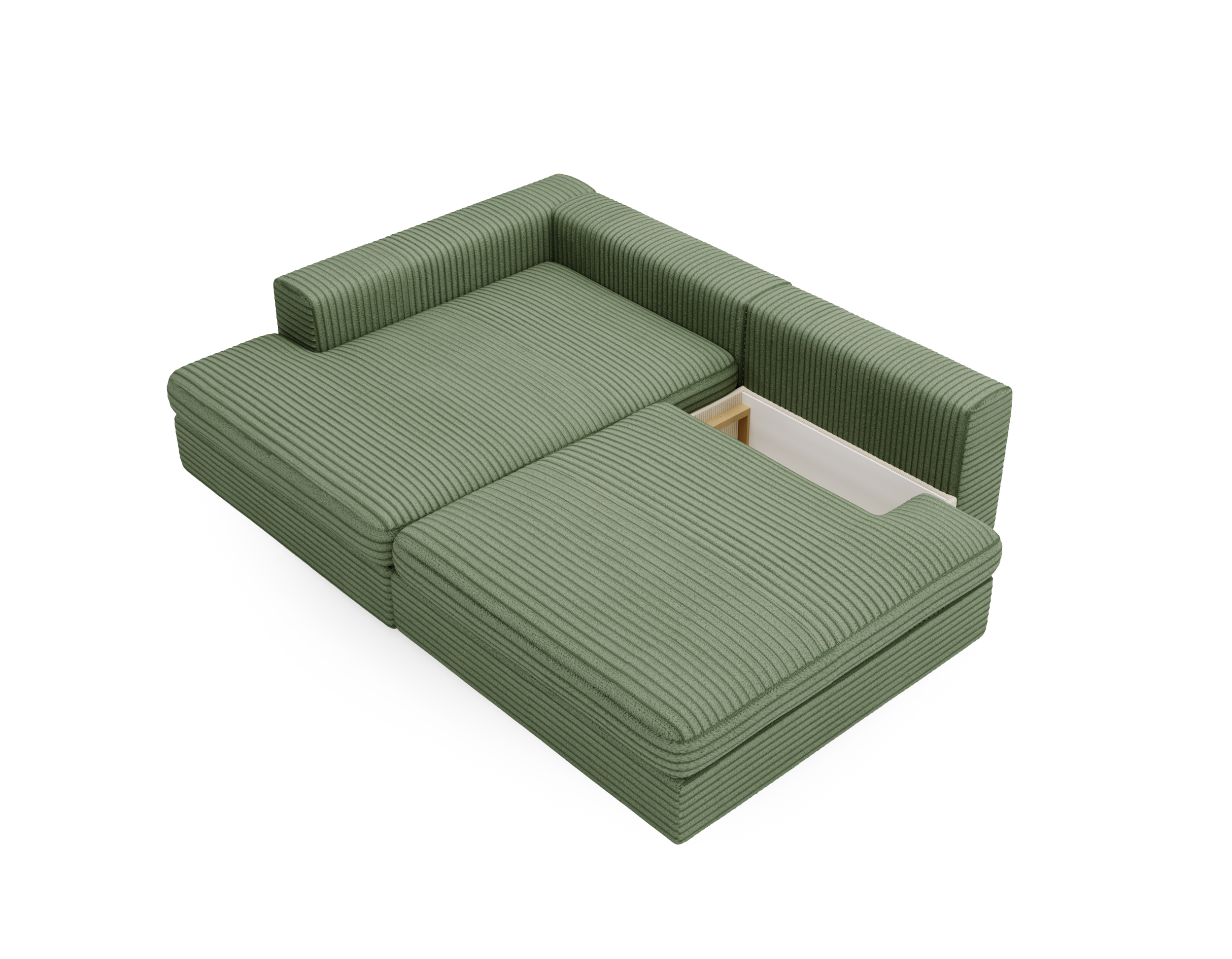Narożnik z funkcją spania Leida z pojemnikiem oliwkowy