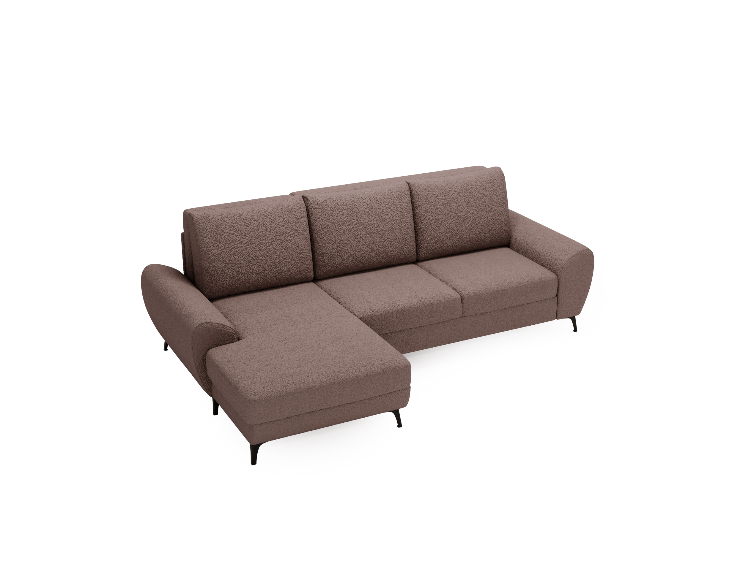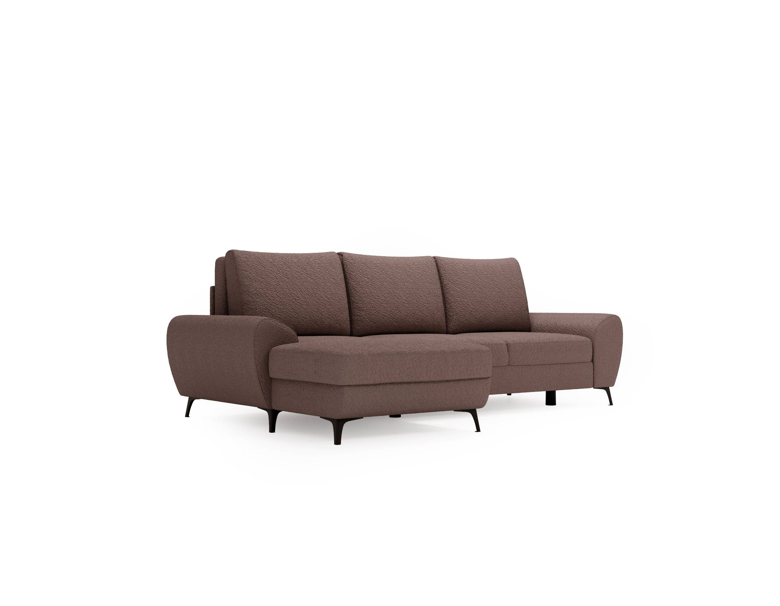 Narożnik Loki to połączenie nowoczesnego designu, solidnego wykonania i funkcjonalności, której oczekujesz od idealnego mebla wypoczynkowego. Klasyczny kształt litery L, szerokie tapicerowane boki oraz czarne metalowe nóżki nadają mu elegancki, a jednocześnie lekko loftowy charakter. Dzięki możliwości wyboru wersji prawo- lub lewostronnej z łatwością dopasujesz go do swojego wnętrza. Tapicerowany tył sprawia, że narożnik doskonale prezentuje się również na środku salonu – to mebel, który wygląda świetnie z każdej strony.