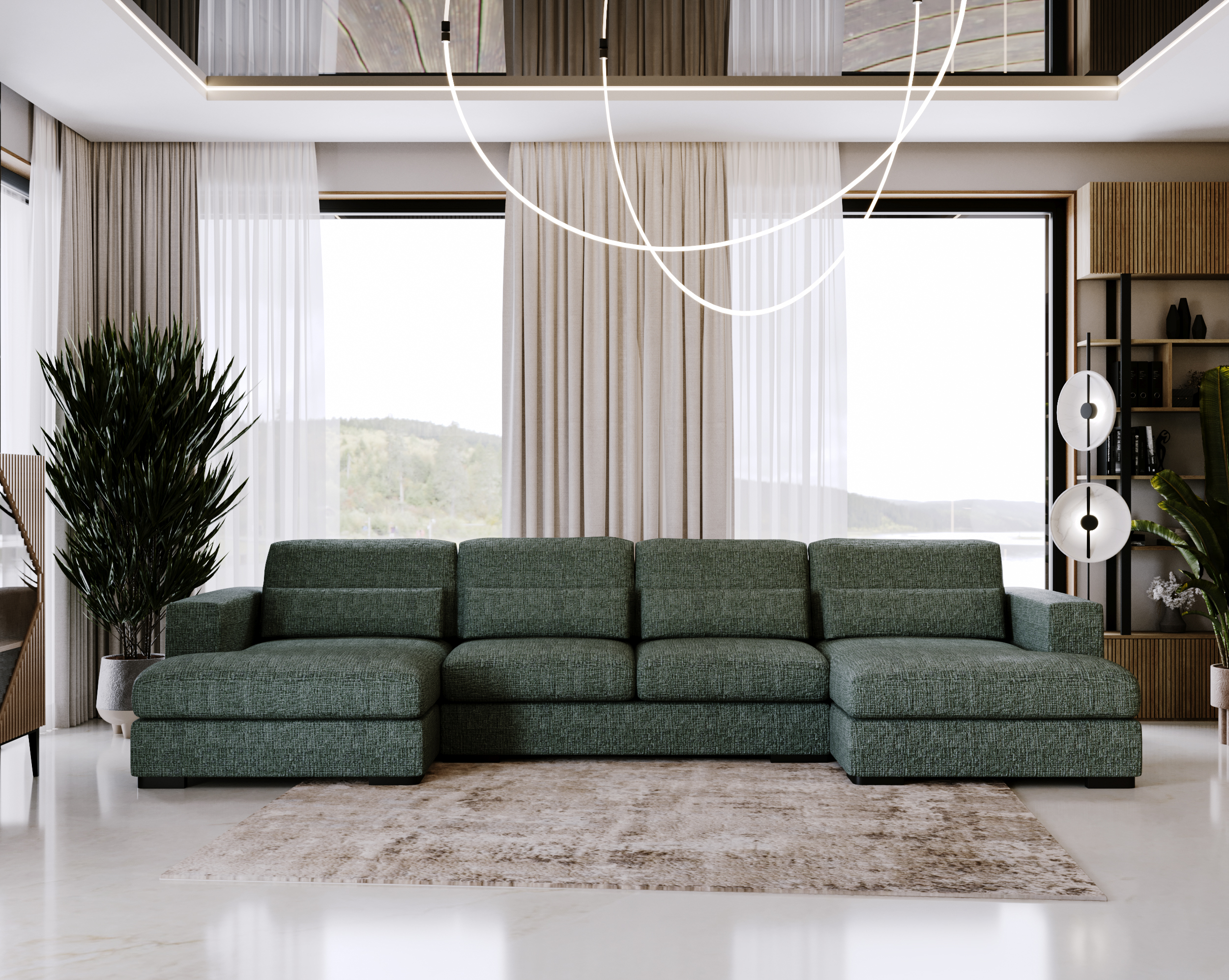 Imponujący narożnik Stella w kształcie litery U to idealna propozycja dla osób, które cenią maksymalną wygodę, dużą przestrzeń wypoczynkową i nowoczesny design. To mebel stworzony z myślą o rodzinnych wieczorach, spotkaniach z przyjaciółmi i codziennym relaksie w najlepszym stylu. Dzięki swojej formie stanie się sercem Twojego salonu.