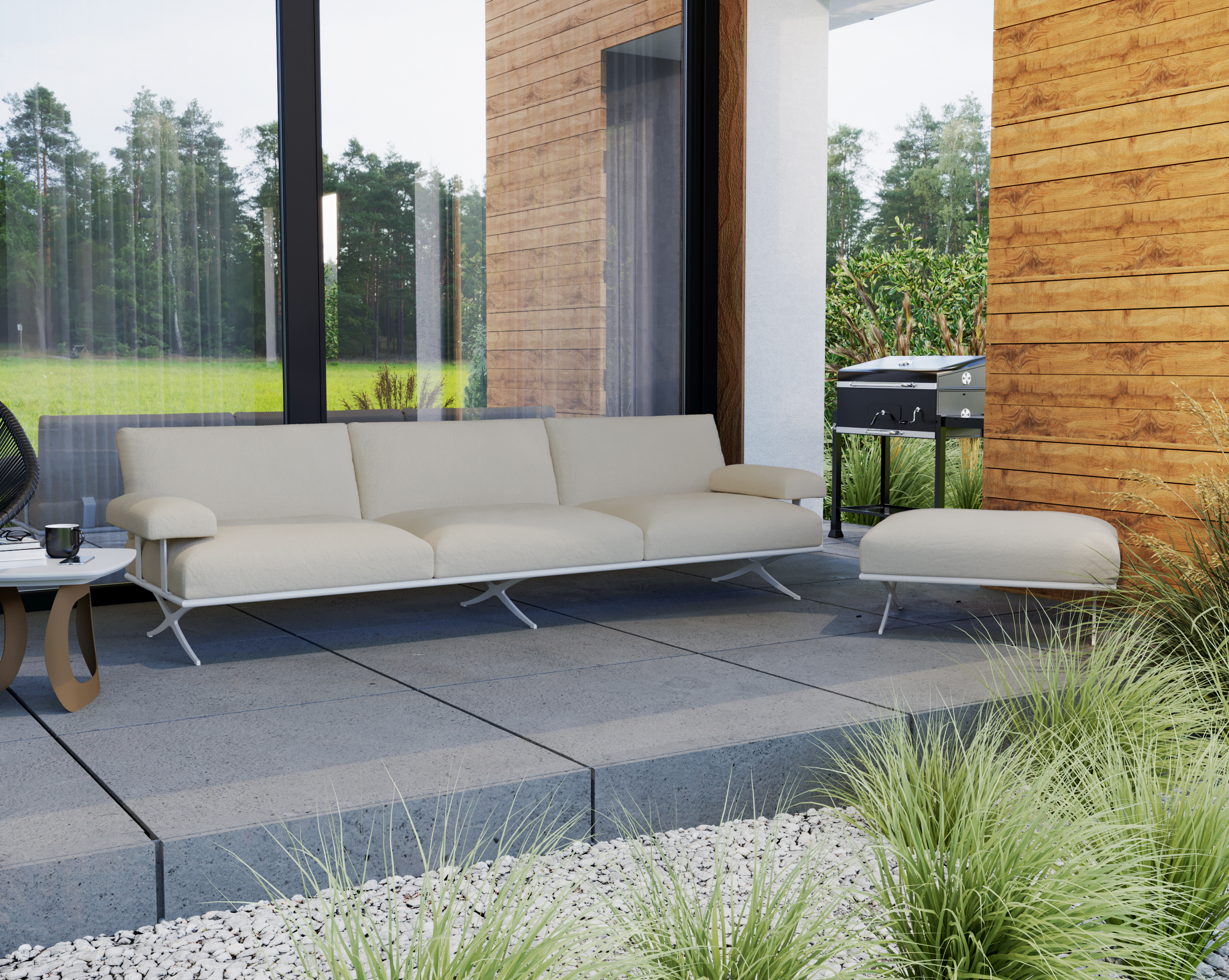 Sofa Valentino 3S to połączenie minimalistycznej elegancji, solidnej konstrukcji i wyjątkowej wygody. Zaprojektowana z myślą o przestrzeniach zewnętrznych, doskonale sprawdzi się na tarasie, w ogrodzie czy w strefie relaksu przy domu. Jej nowoczesna forma i metalowe detale nadają aranżacji lekkości, a jednocześnie podkreślają jej wyrazisty charakter.